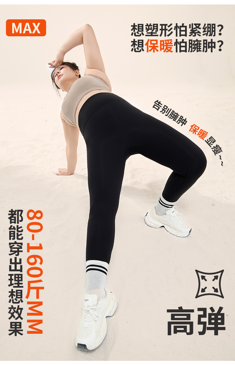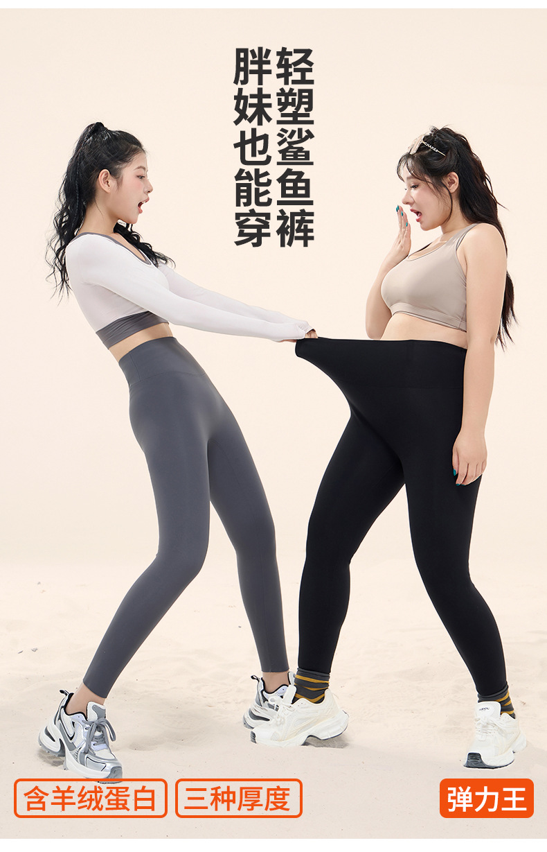 美愫加绒鲨鱼裤女秋冬高腰保暖运动休闲九分裤健身外穿胖MM瑜伽裤