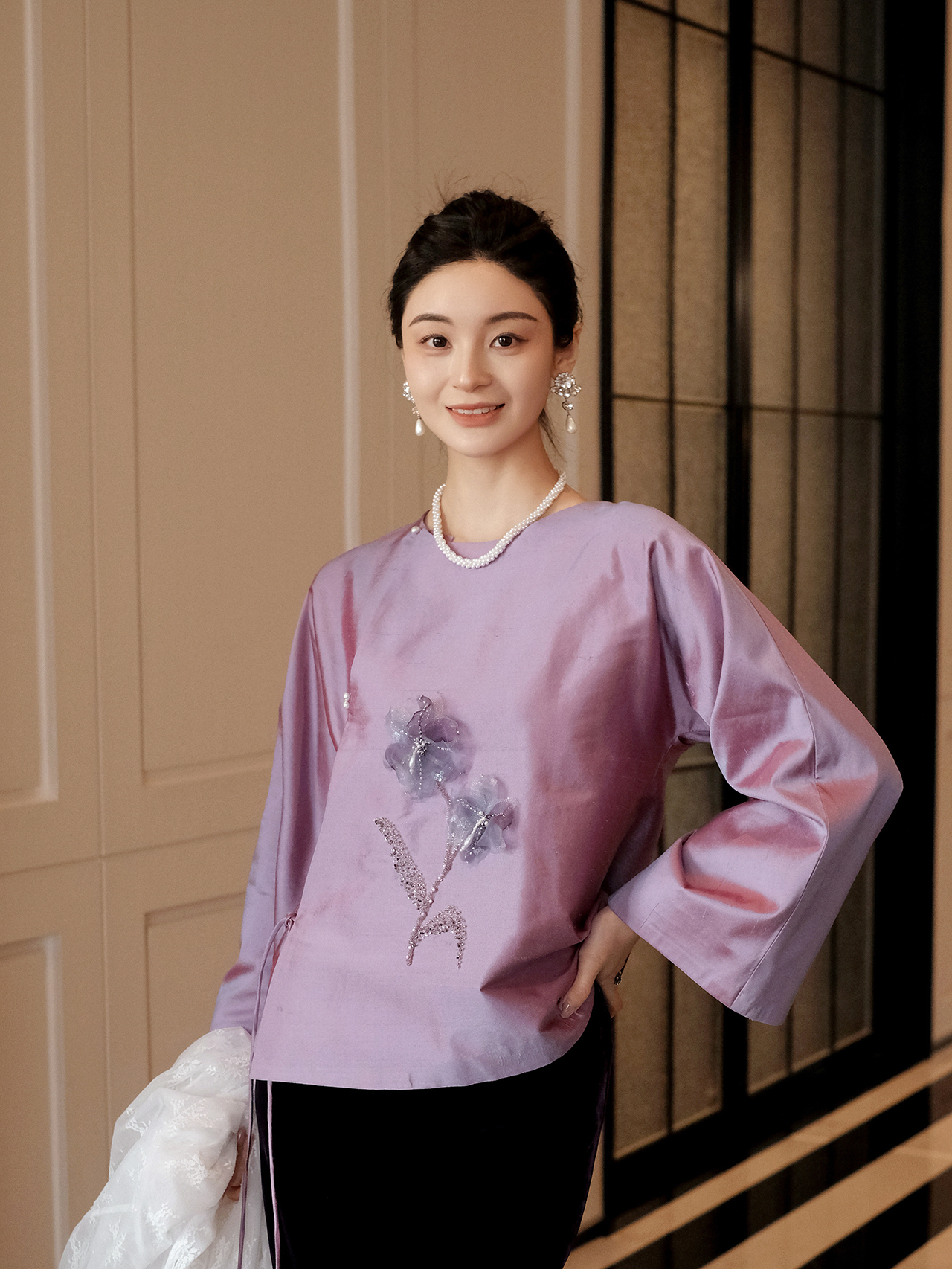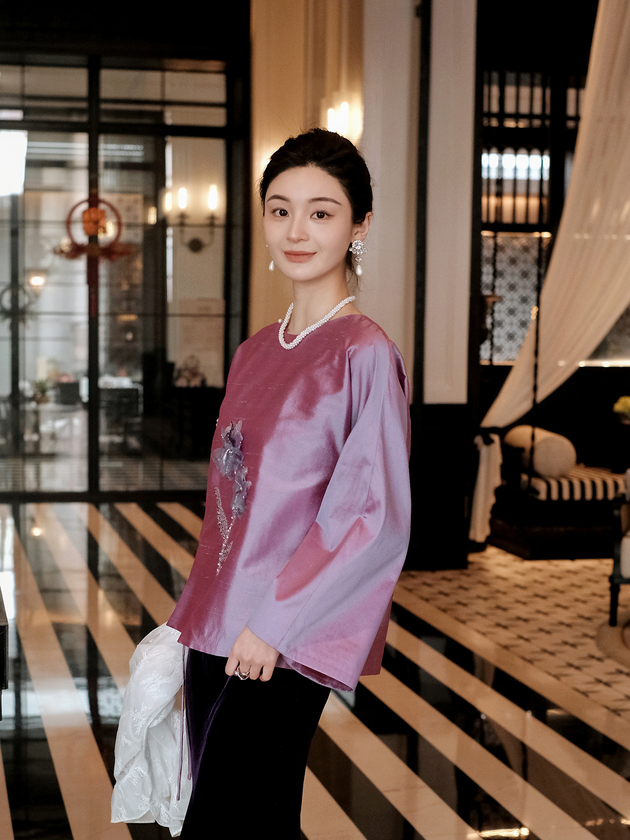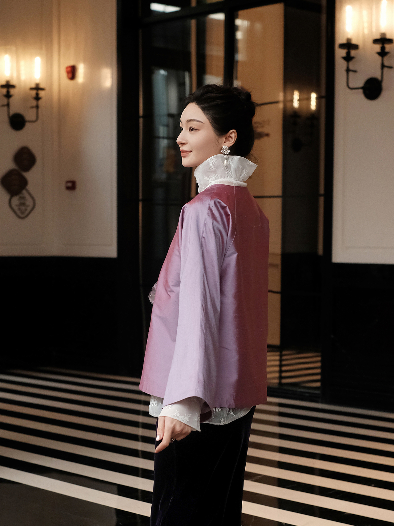 暂不上架 |廷前观棠 | 垂烟双宫丝七分袖外套