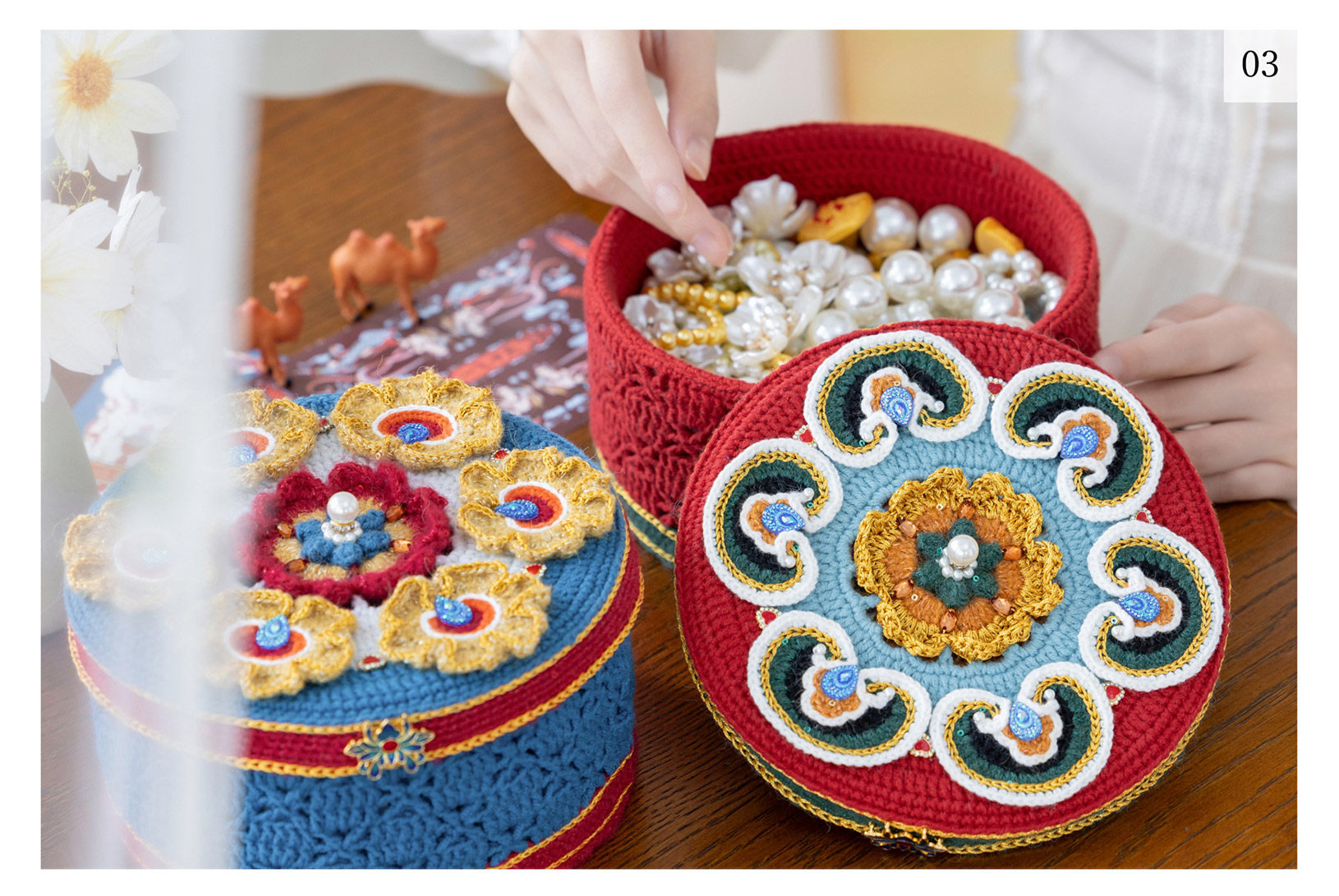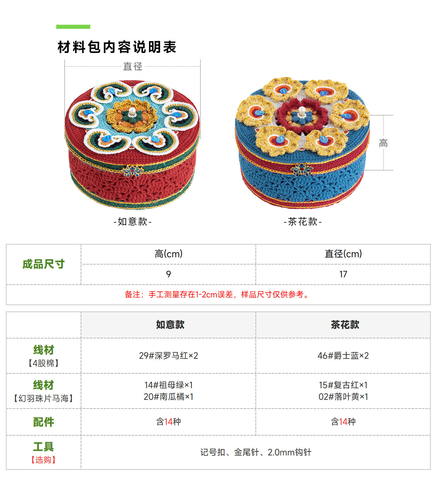 苏苏姐家如意茶花收纳盒手工编织钩针家居手工diy材料包毛线团