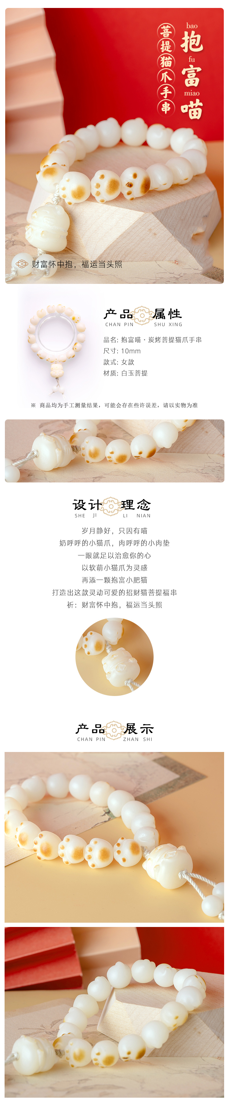 【宫里手串】抱富喵 菩提猫爪手串