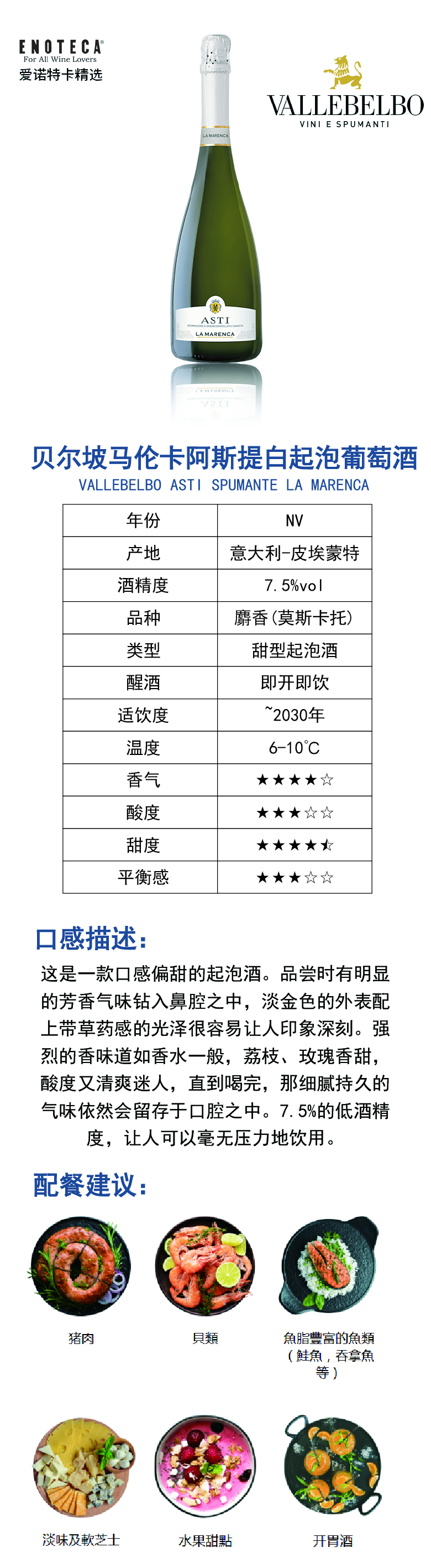 贝尔坡马伦卡阿斯提白起泡葡萄酒(白标)750ml Nv 750