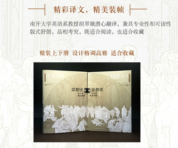 本书由译林出版社精心策划,请到南开大学外国语学院教授、翻译系主任胡翠娥,经多年潜心翻译和打磨,以一己之力完成了这套近百万字的《思想史》翻译工作,不仅译文优美地道,而且对历史资料均有细致查证,保证了本书的专业性和可读性。