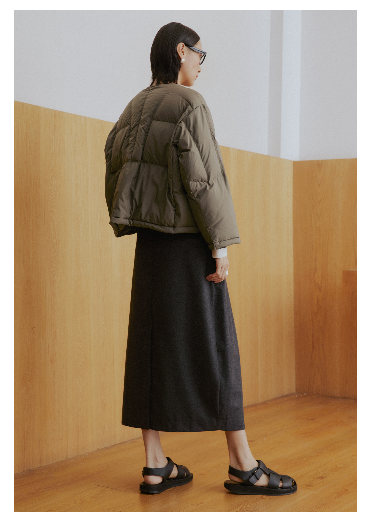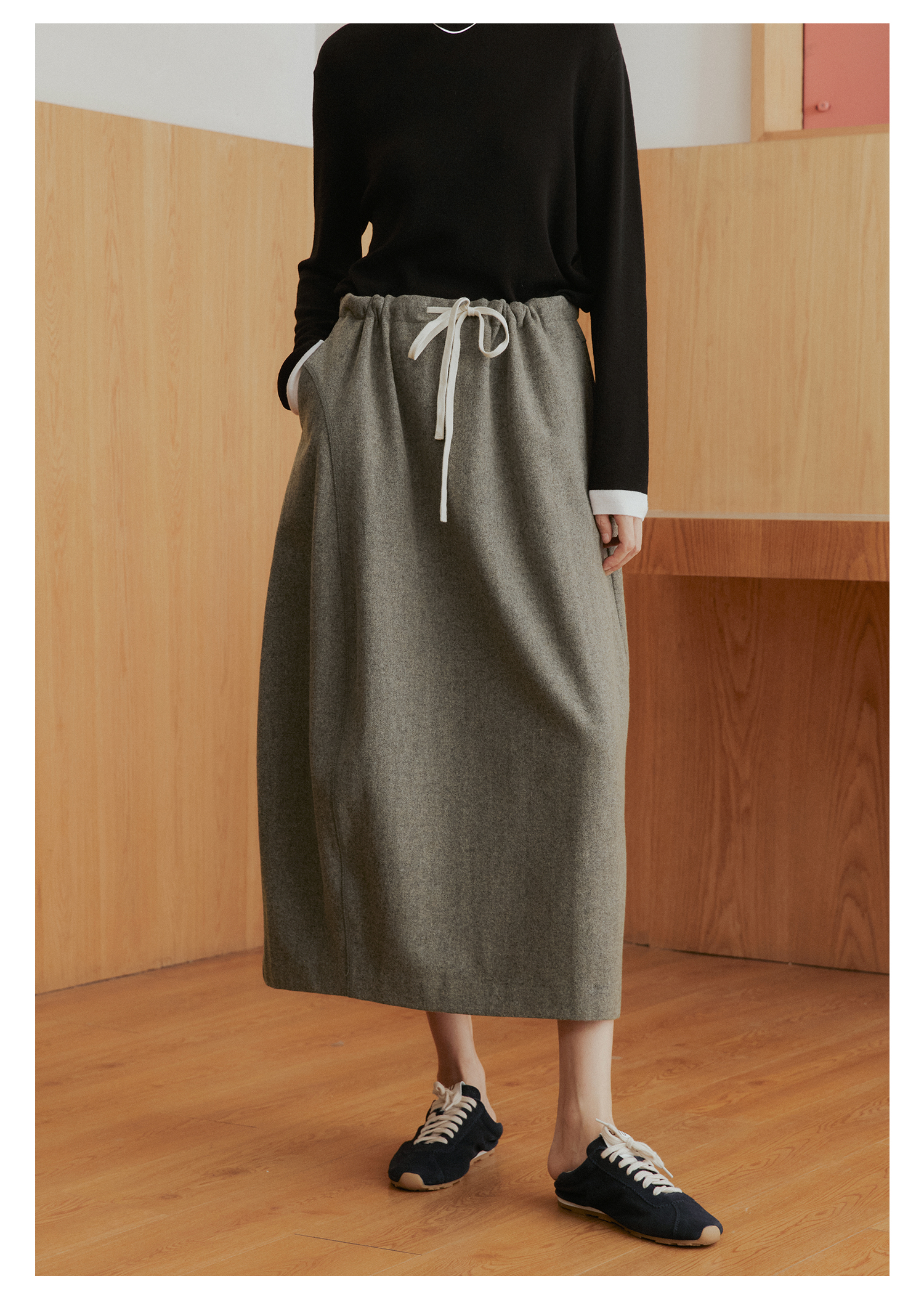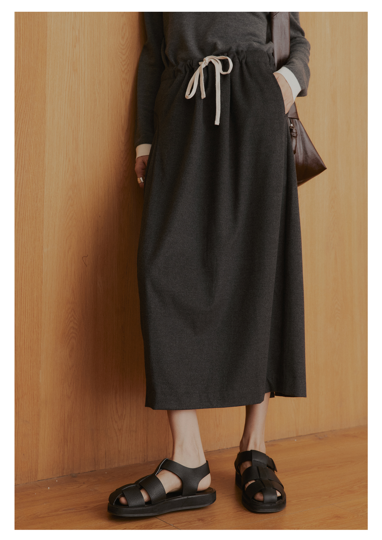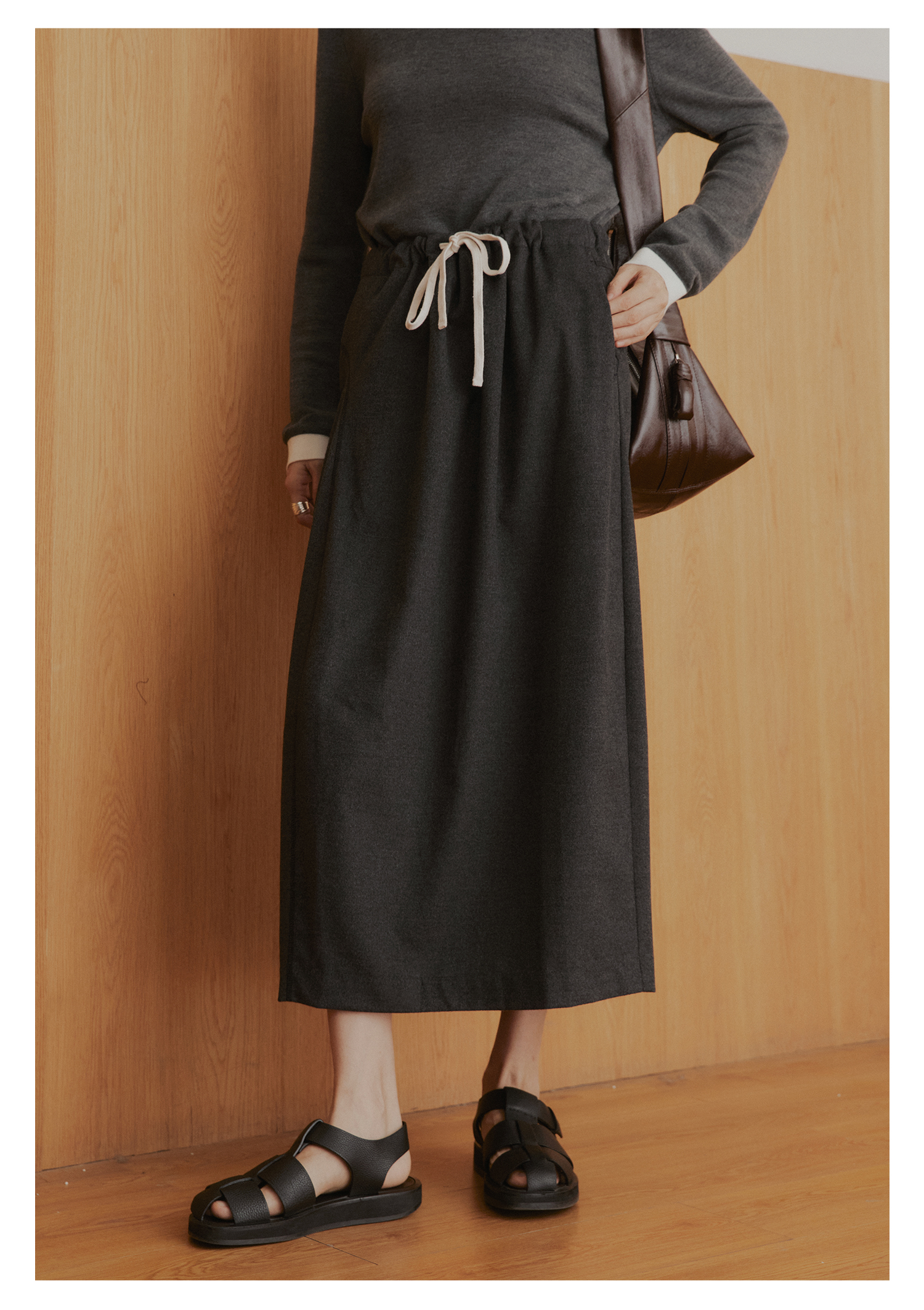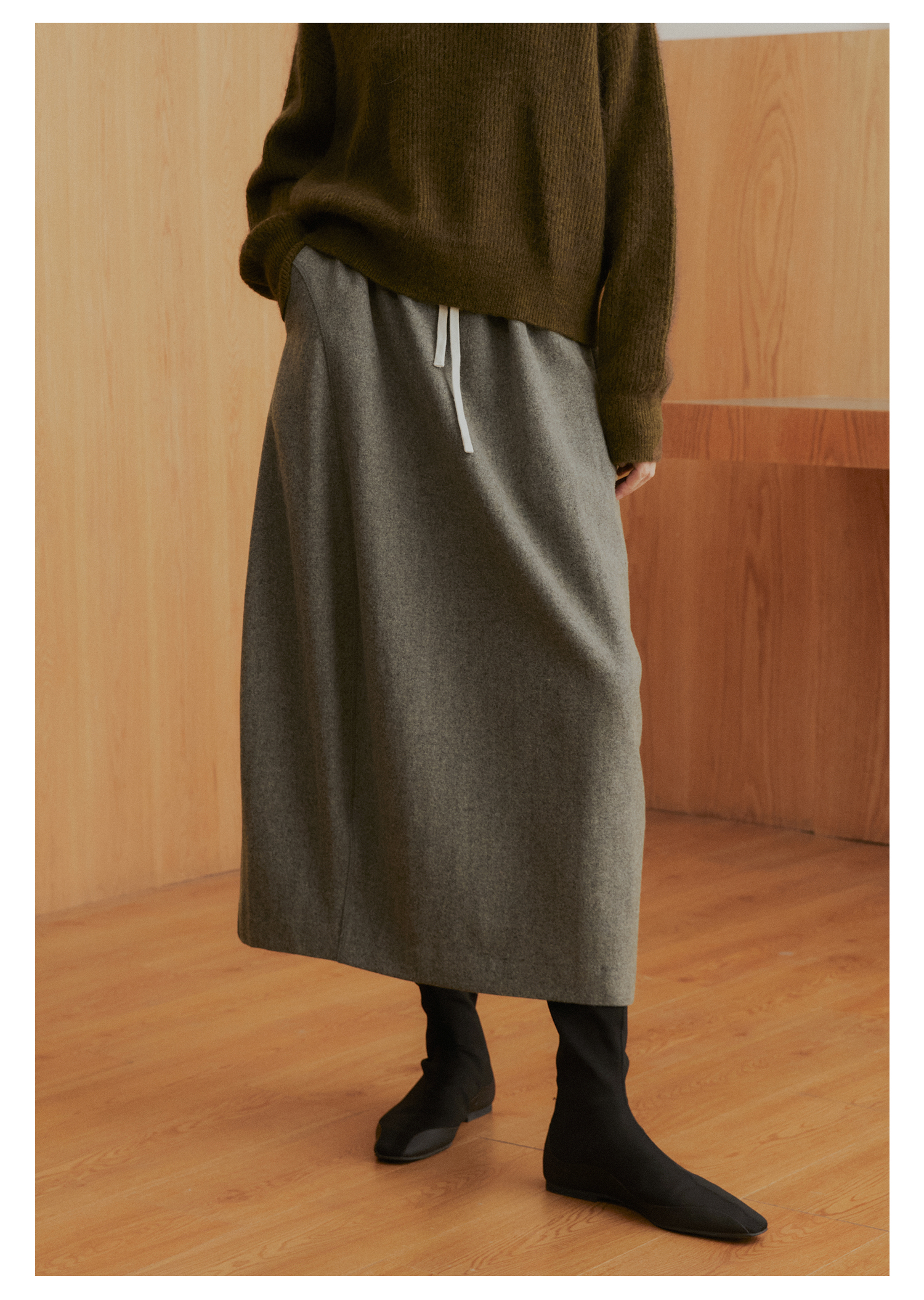 棉仓3571517001-秋冬新款通勤羊毛直筒厚款半身裙 简约中长裙冬
