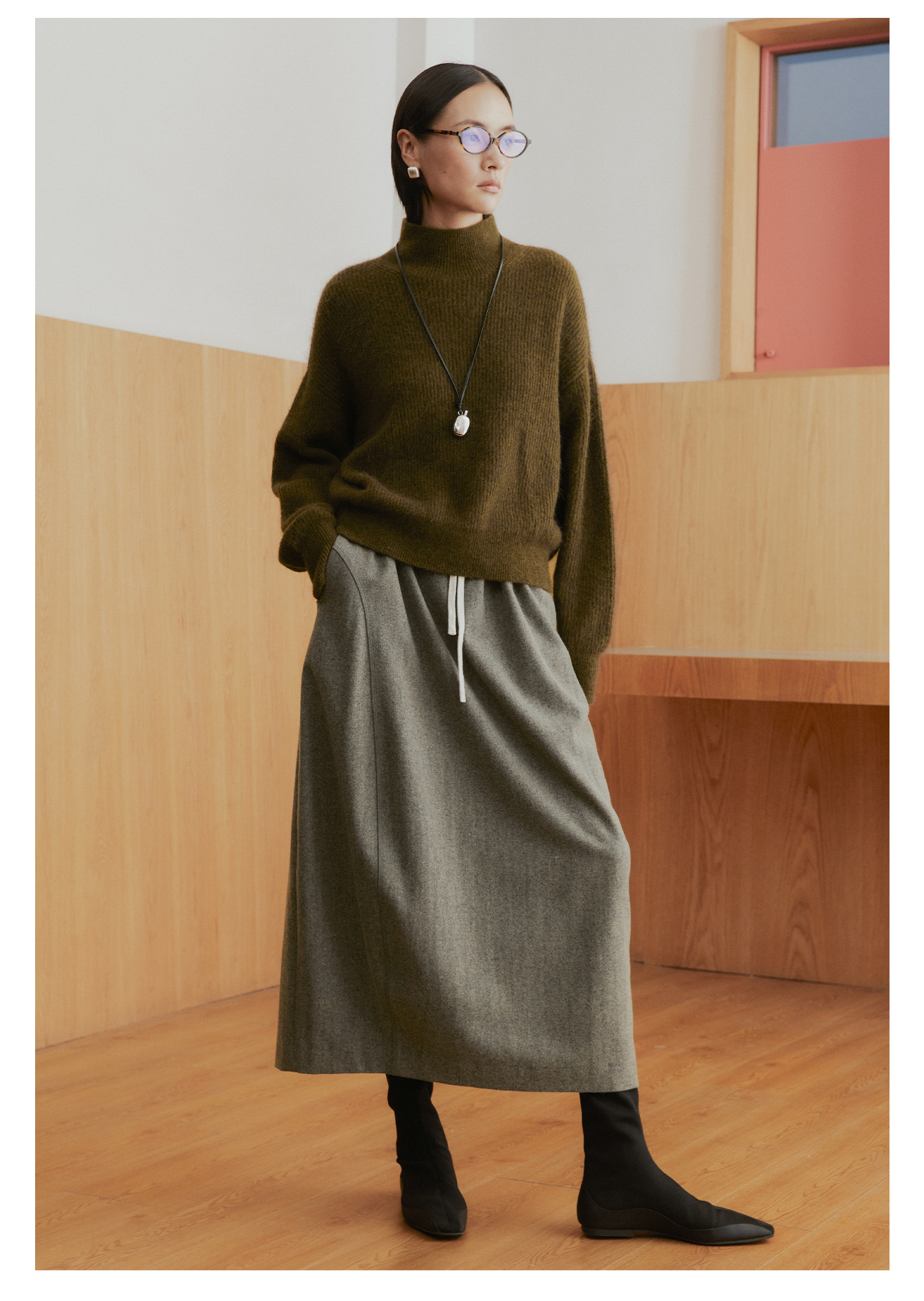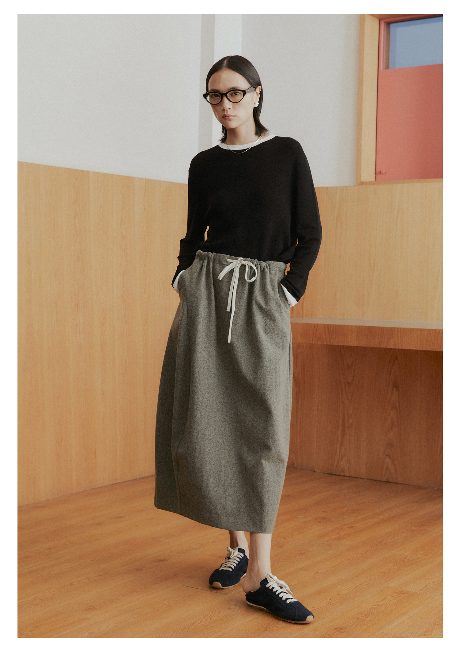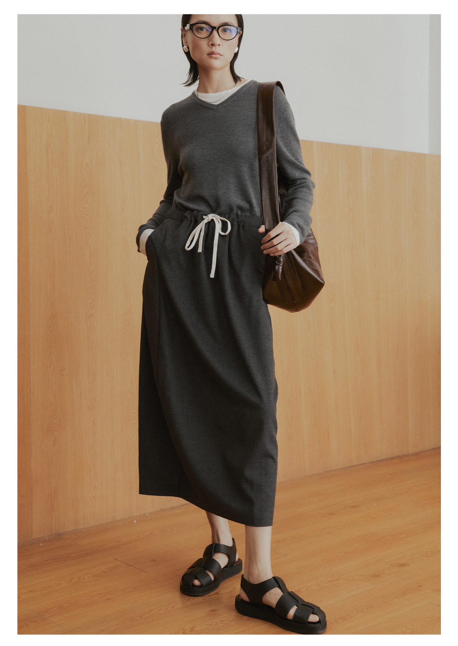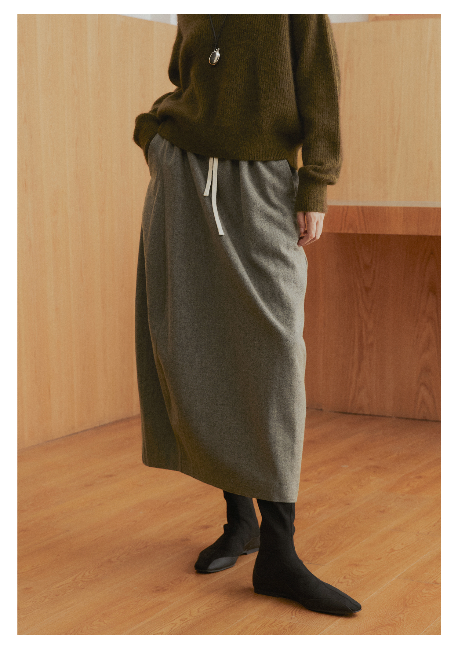 棉仓3571517001-秋冬新款通勤羊毛直筒厚款半身裙 简约中长裙冬