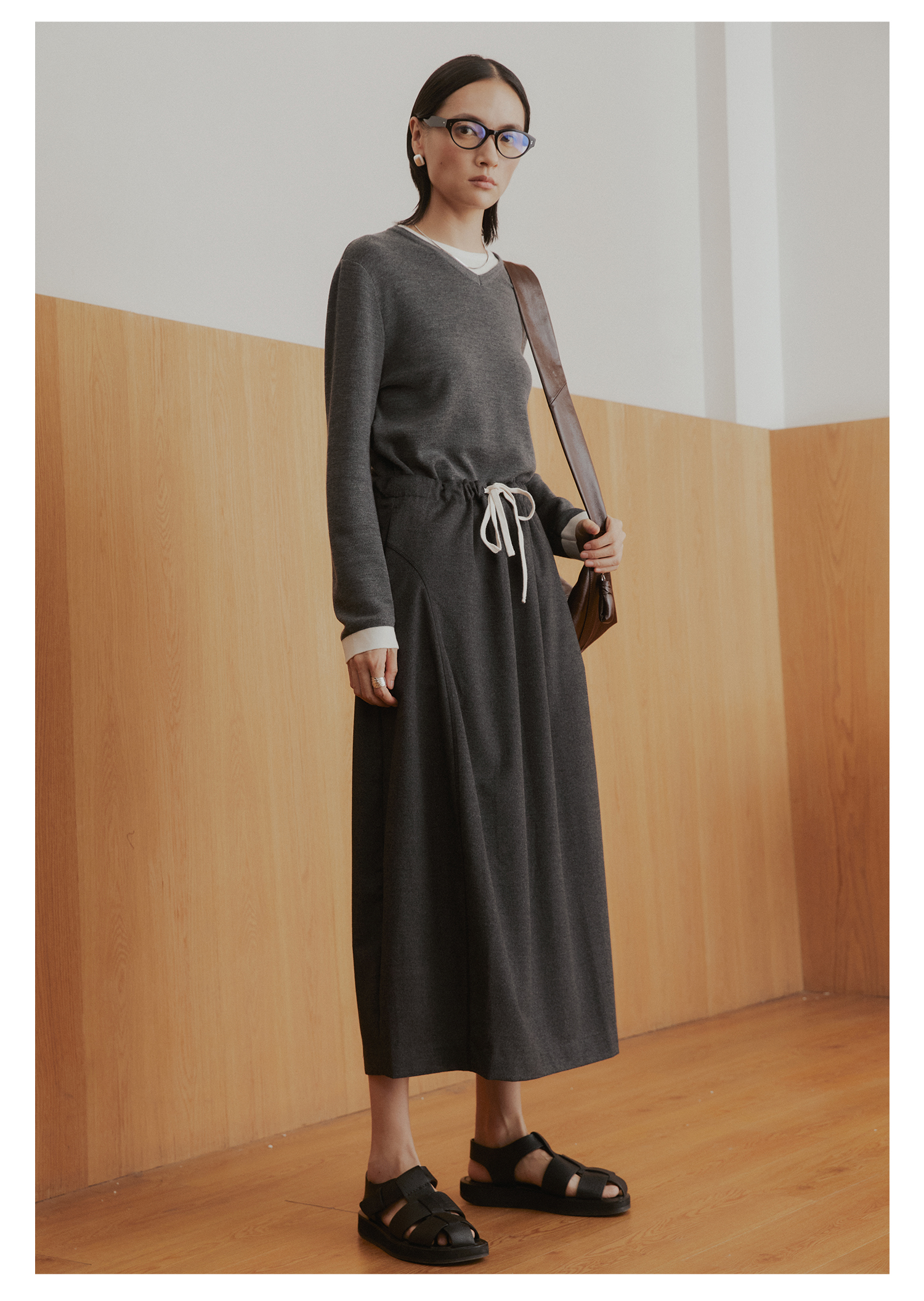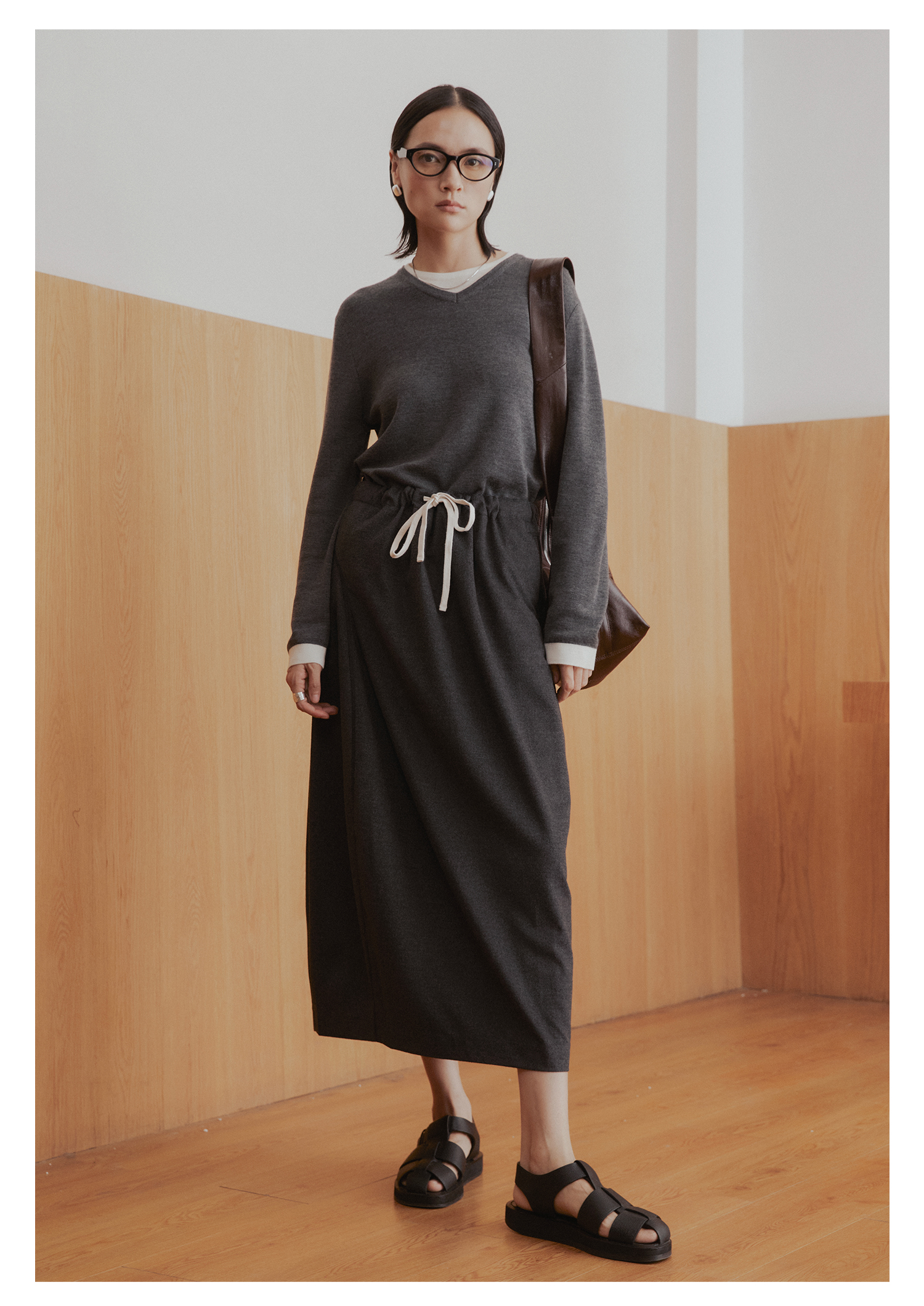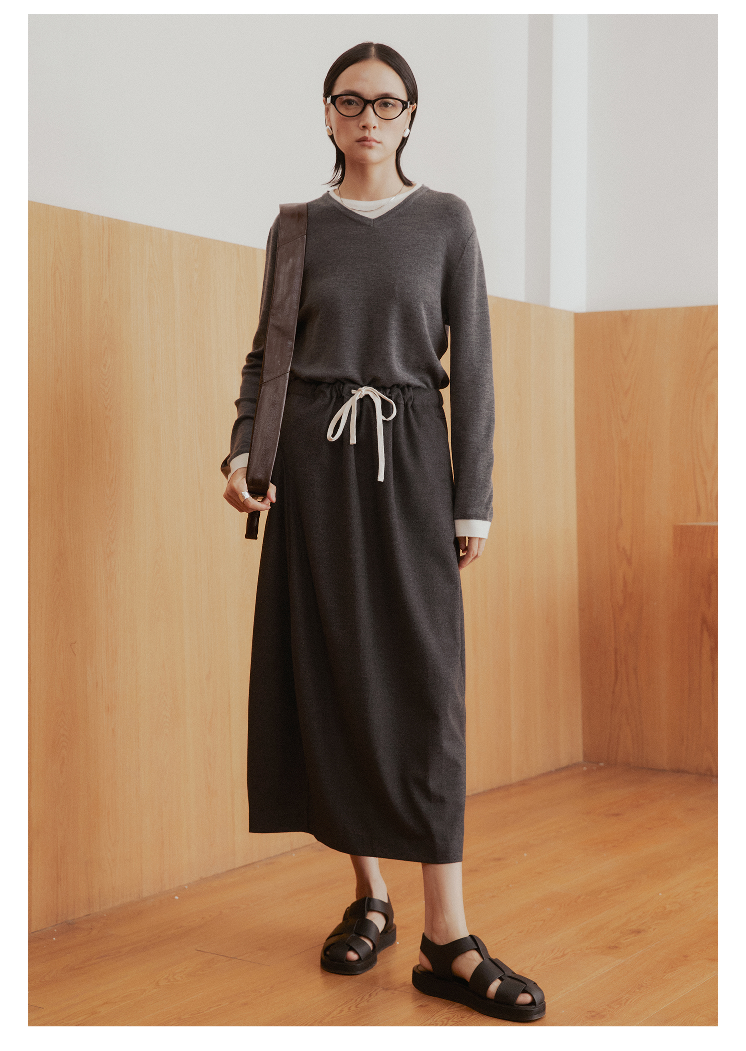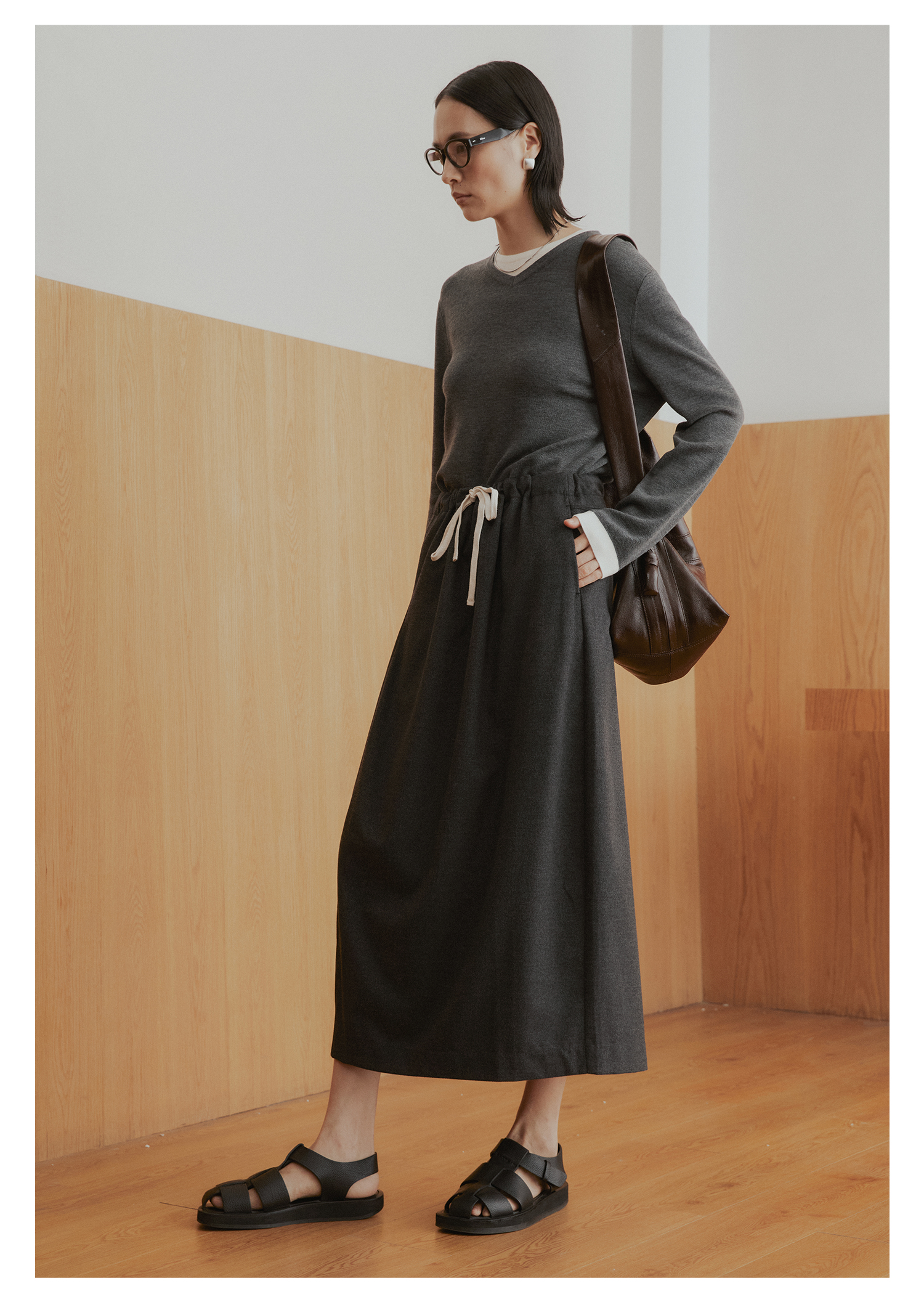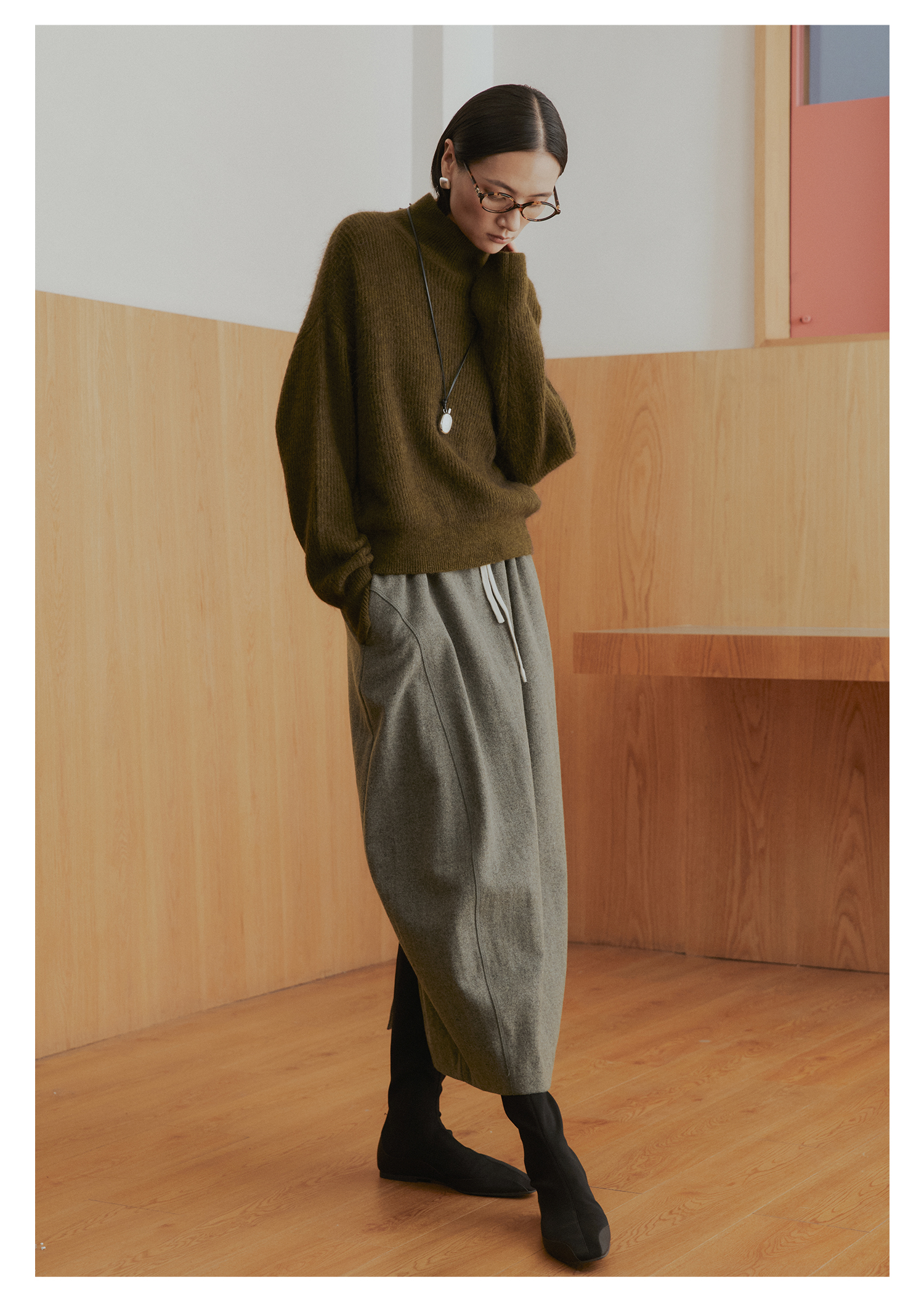 棉仓3571517001-秋冬新款通勤羊毛直筒厚款半身裙 简约中长裙冬