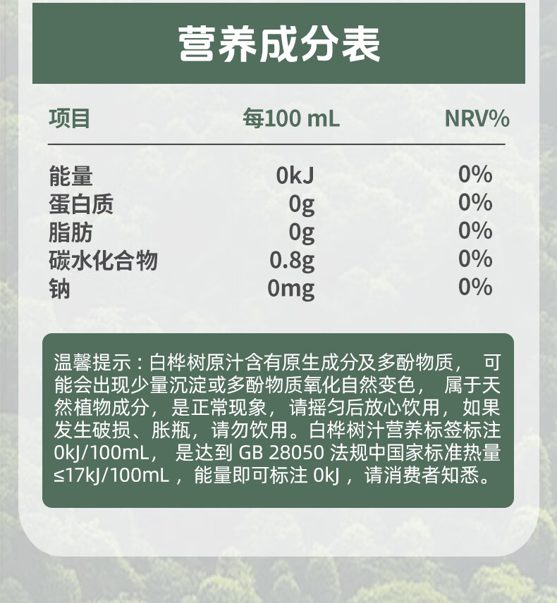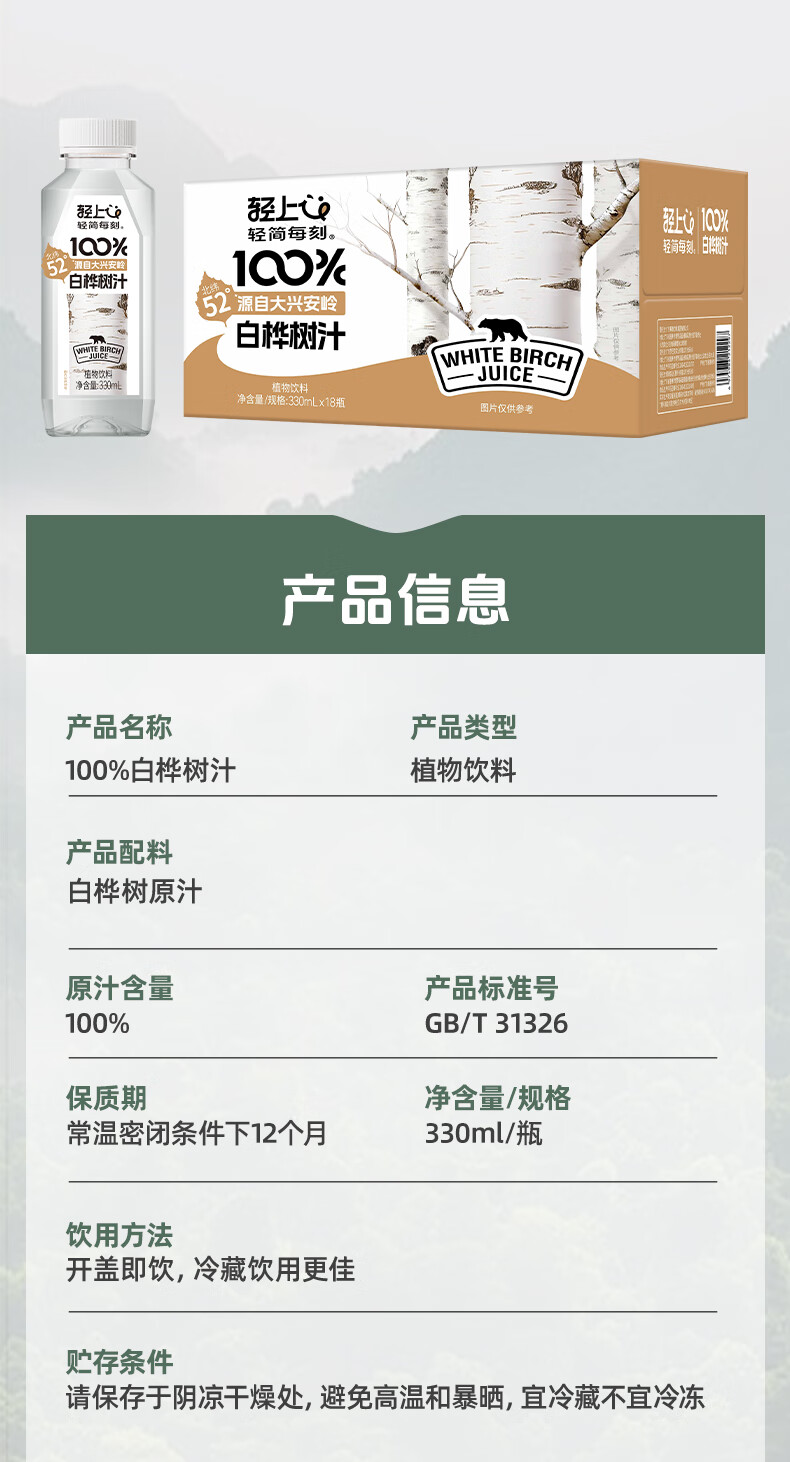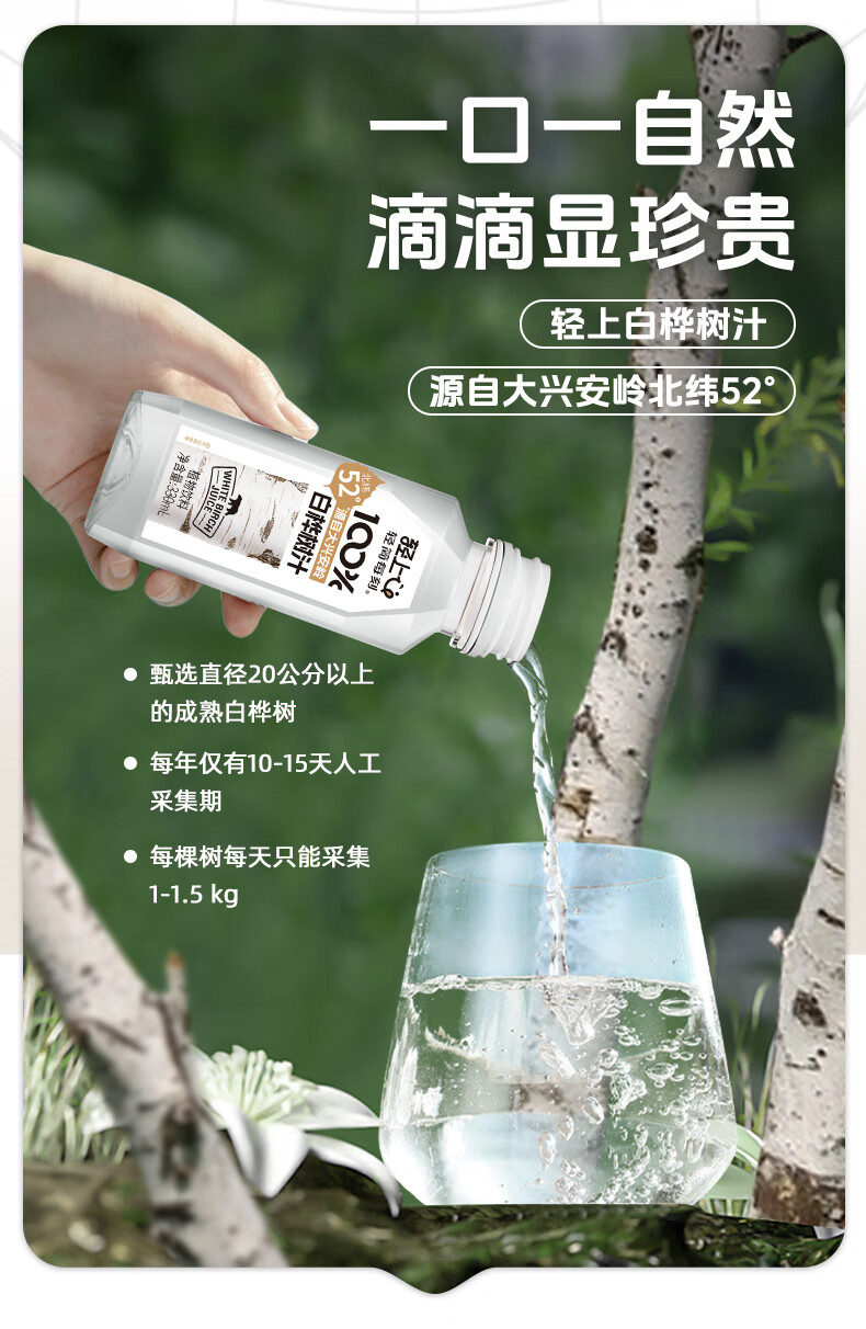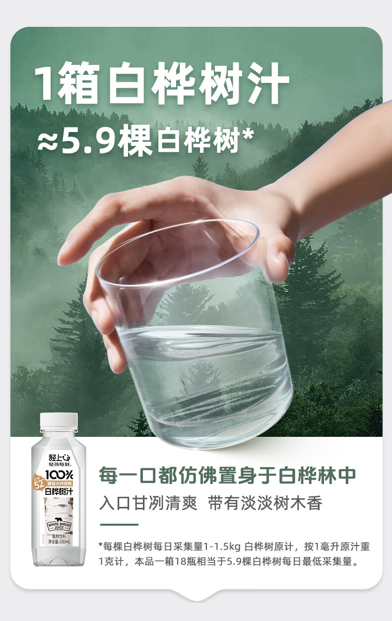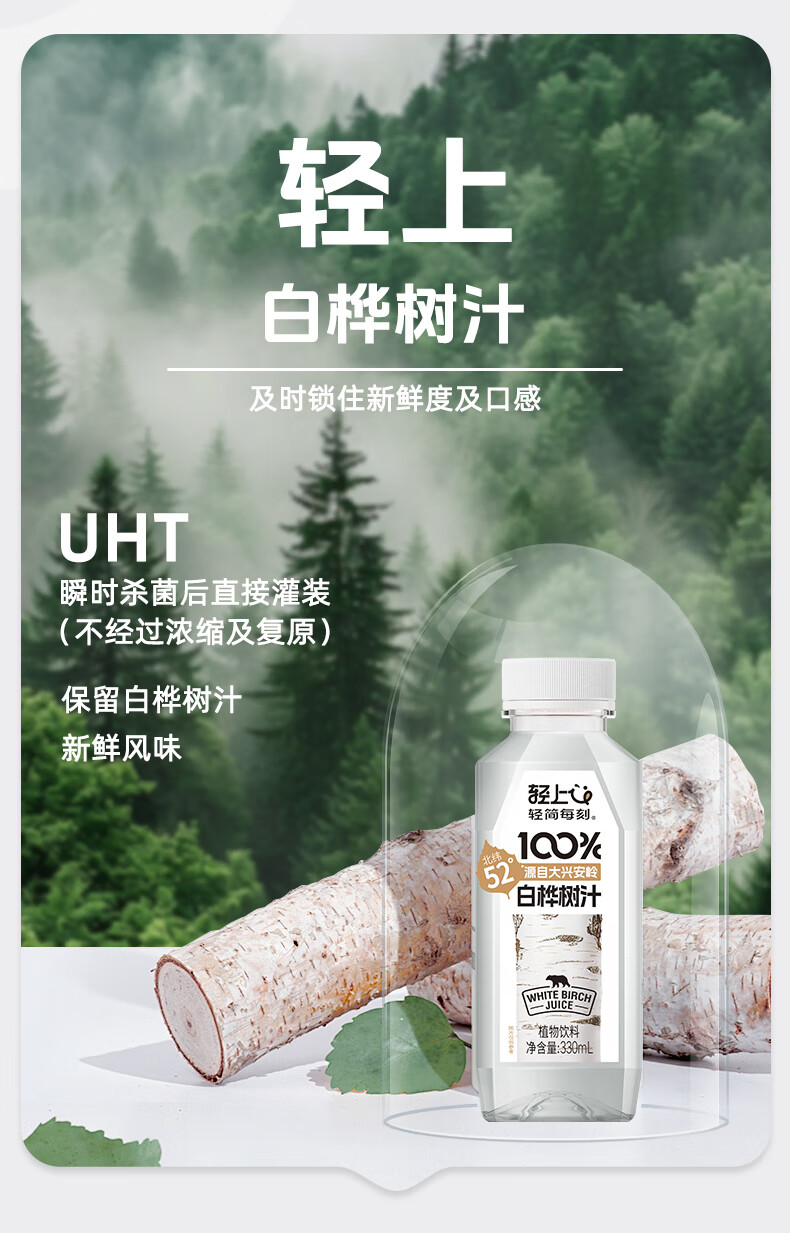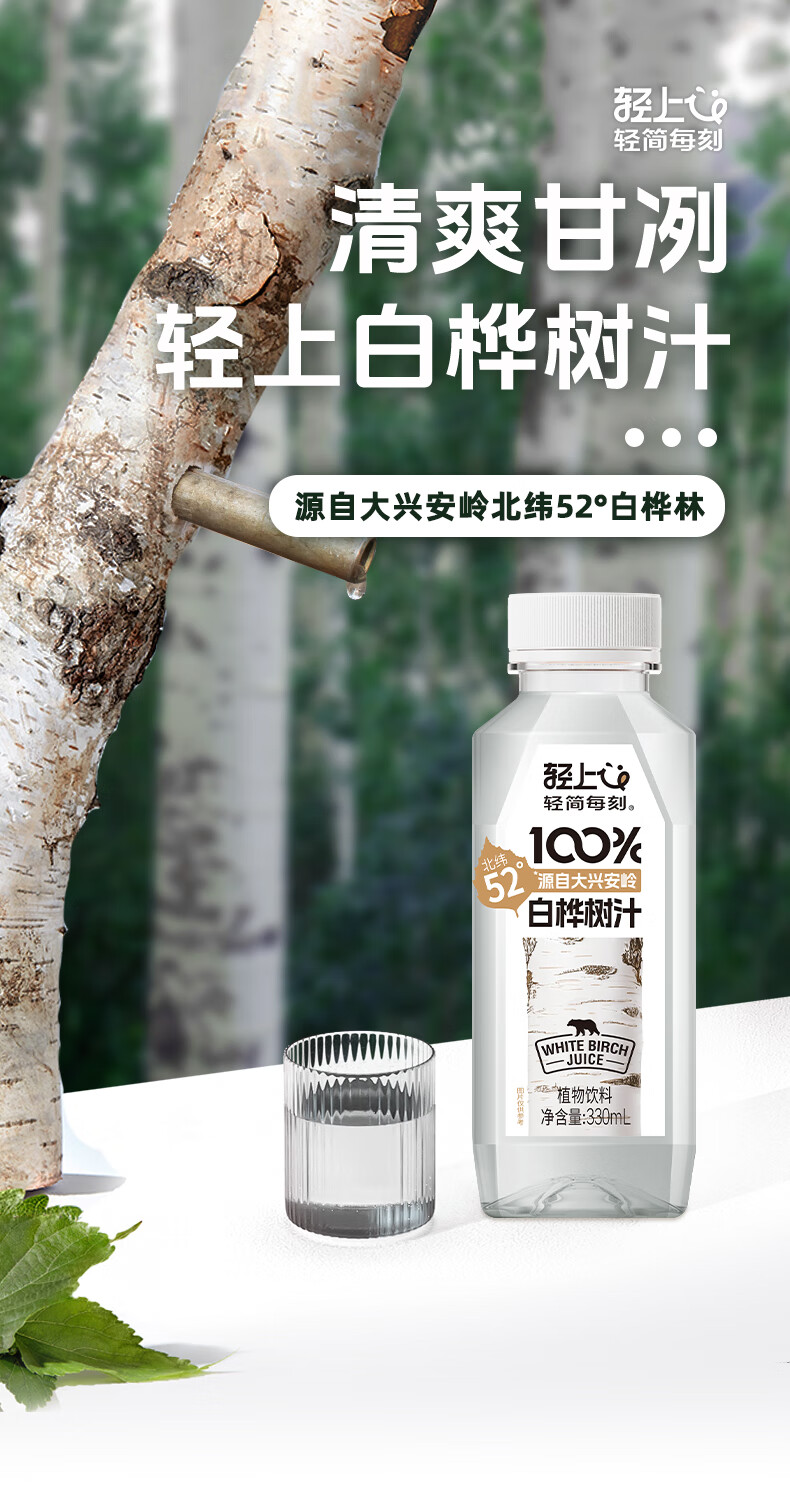 轻上100%白桦树汁植物饮料天然原汁0脂0卡清爽甘甜安心畅饮 330ml*18瓶