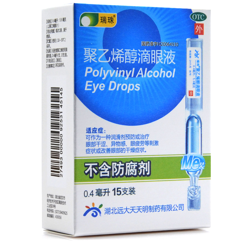 瑞珠 聚乙烯醇滴眼液 15支 预防或治疗眼部干涩异物感眼疲劳 干燥