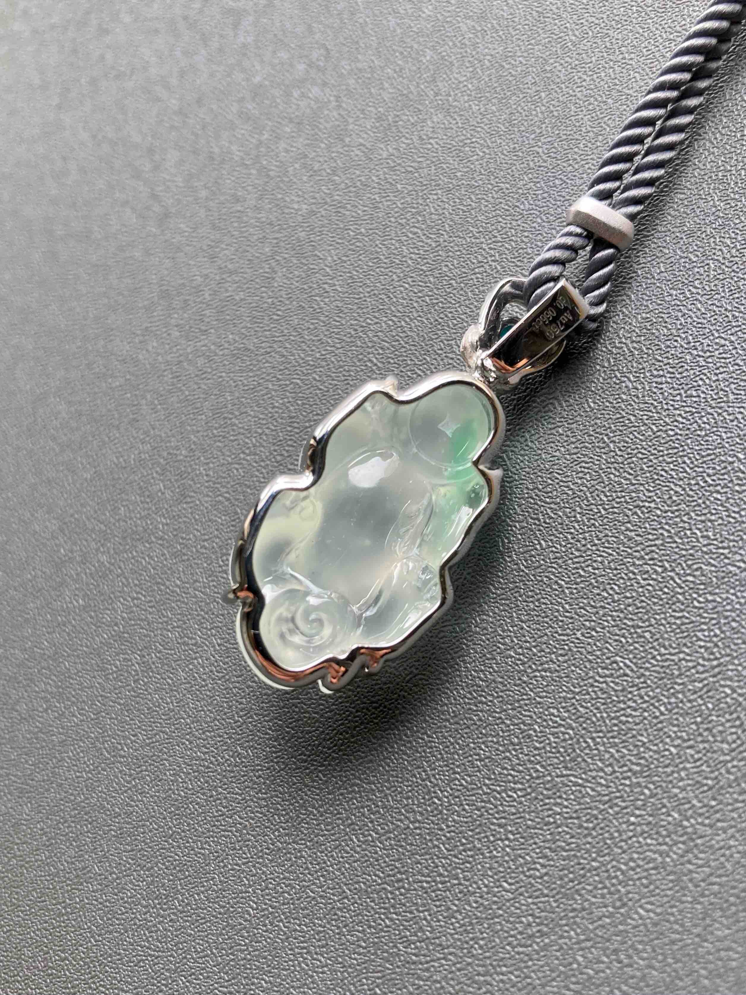 冰种飘阳绿翡翠福豆吊坠18k白金钻石镶嵌