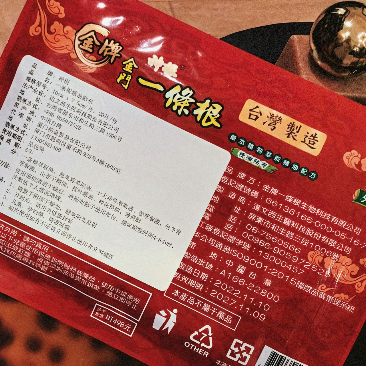 [屁侠推荐] 金牌神根一条根 金门一条根 一条根龙牌贴 贴膏 随意裁剪