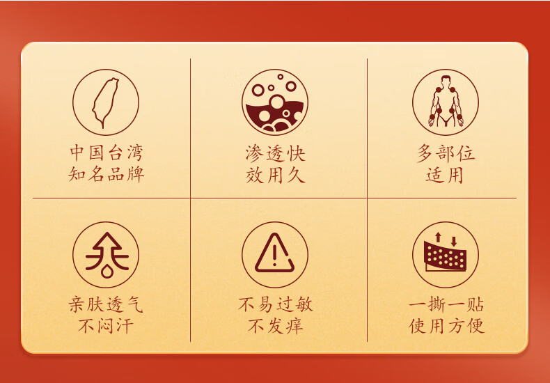 一条根贴上后是那种温温的发热感,能感觉到肌肉慢慢放松,味道也很好闻,不会特别刺鼻,我最最喜欢的一点是,贴得牢,但撕下来也比较容易,不会把毛也拔掉。。。我自己主要是手腕和腰,平时坐着玩手机太频繁了,如果家里有老人在遇到梅雨天气或者腿脚不舒服时,也可以贴上一条根,效果也不错,可以常备!