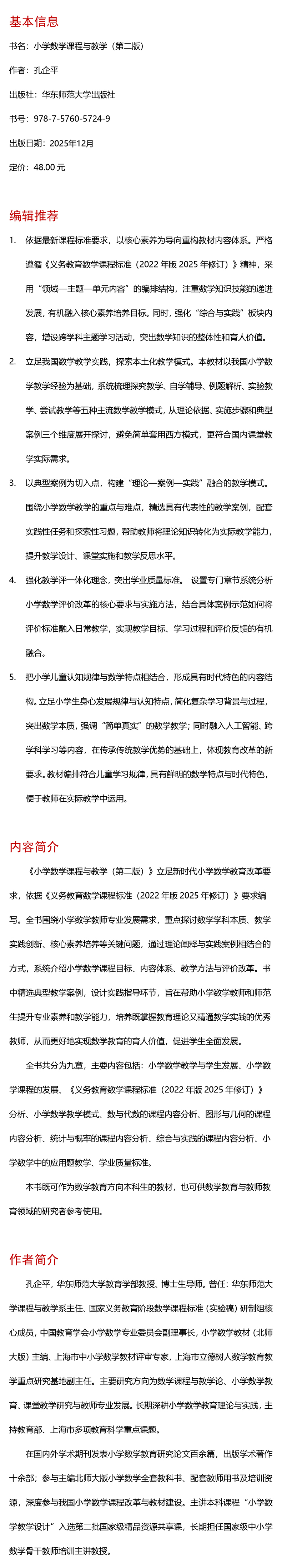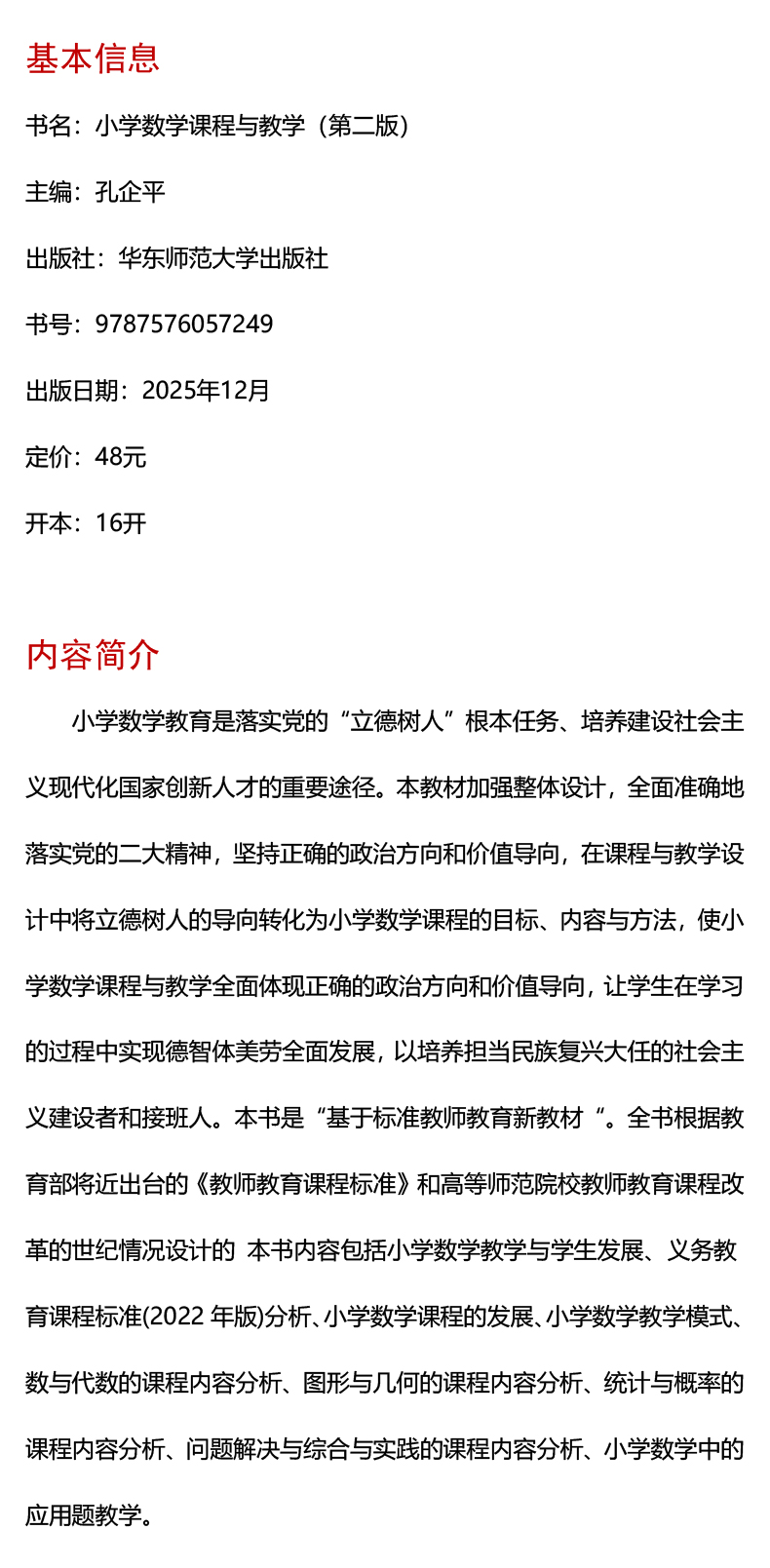 小学数学课程与教学 第二版 孔企平 高等院校小学教育专业教材