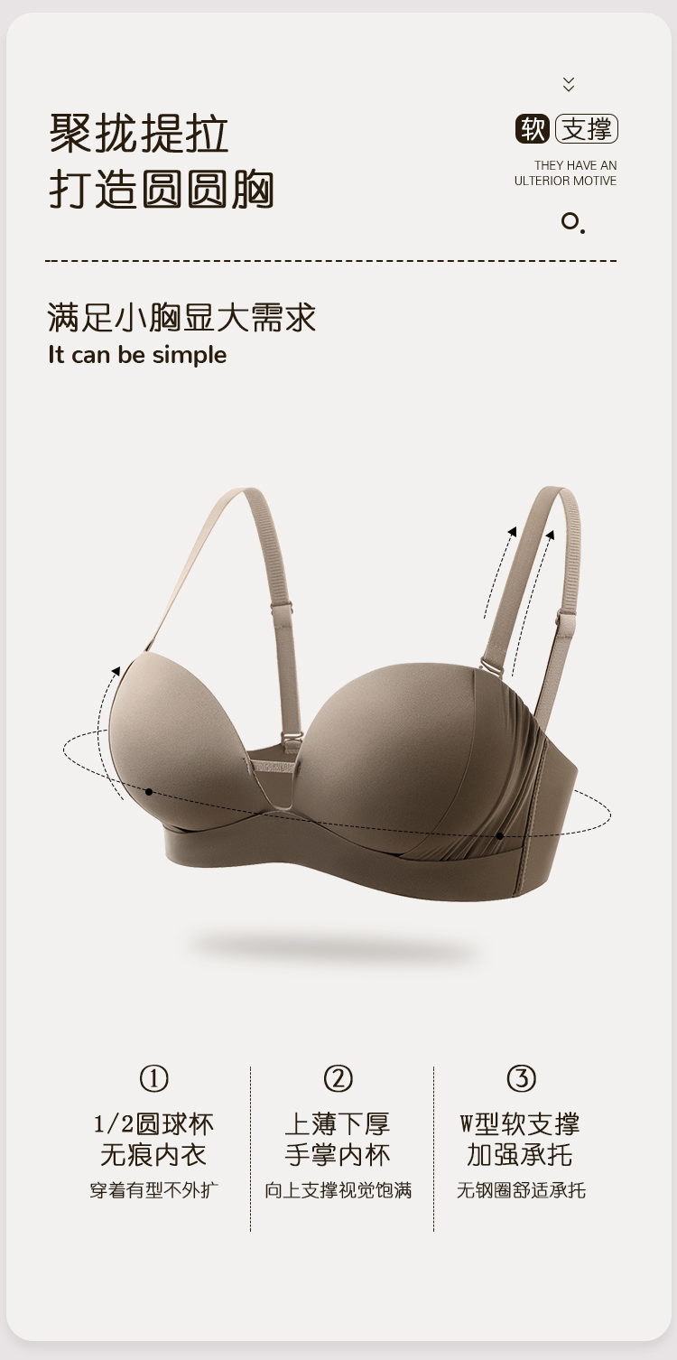 【298选3】A1-【A-B杯】【高性价比】【一穿就挺提拉聚拢无痕小胸显大内衣女收副乳调整型美背文胸罩 玲珑娇俏【小胸-光面】