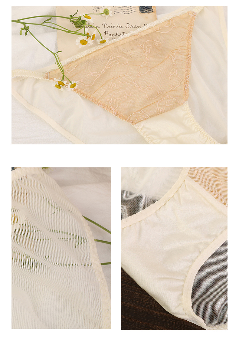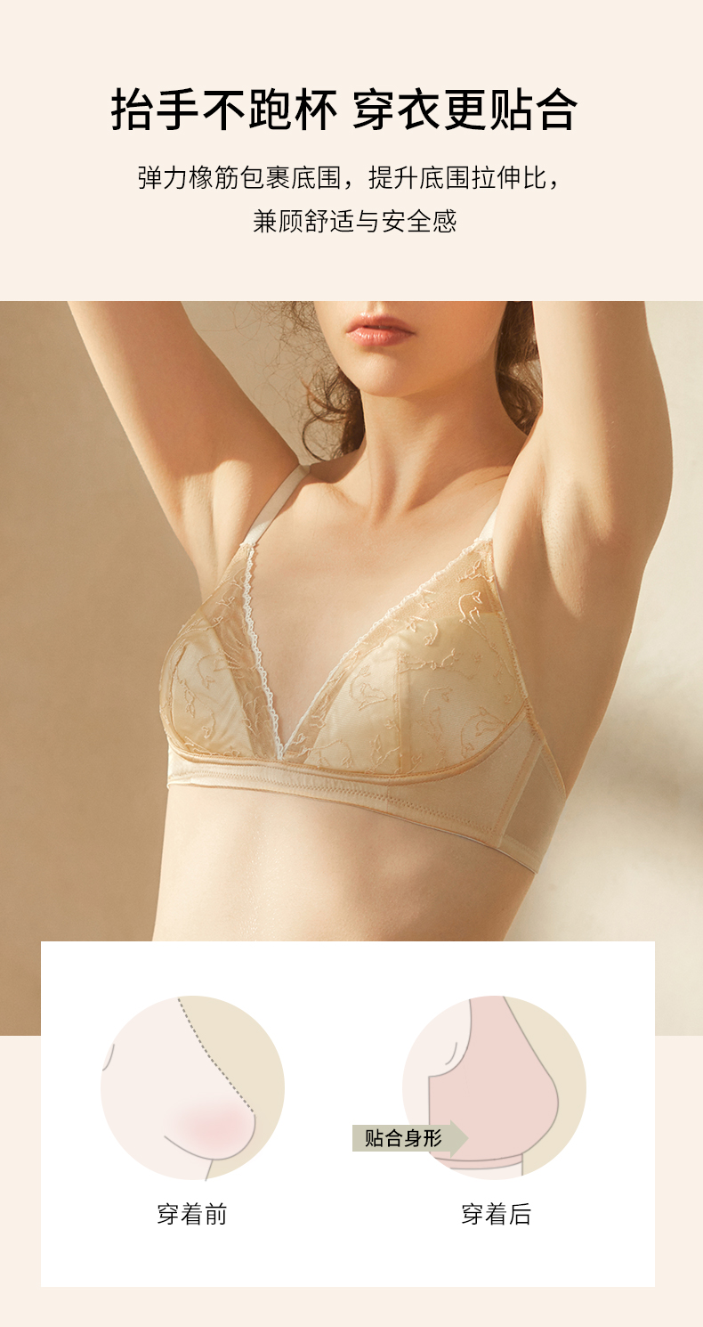 金三塔海豚刺绣内衣女法式5/8罩杯小胸胸罩真丝无钢圈文胸套装 NZFBC394