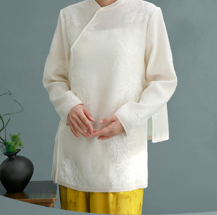 扶摇 中国风提花衬衫女春2024年新款复古民国风立领长袖上衣