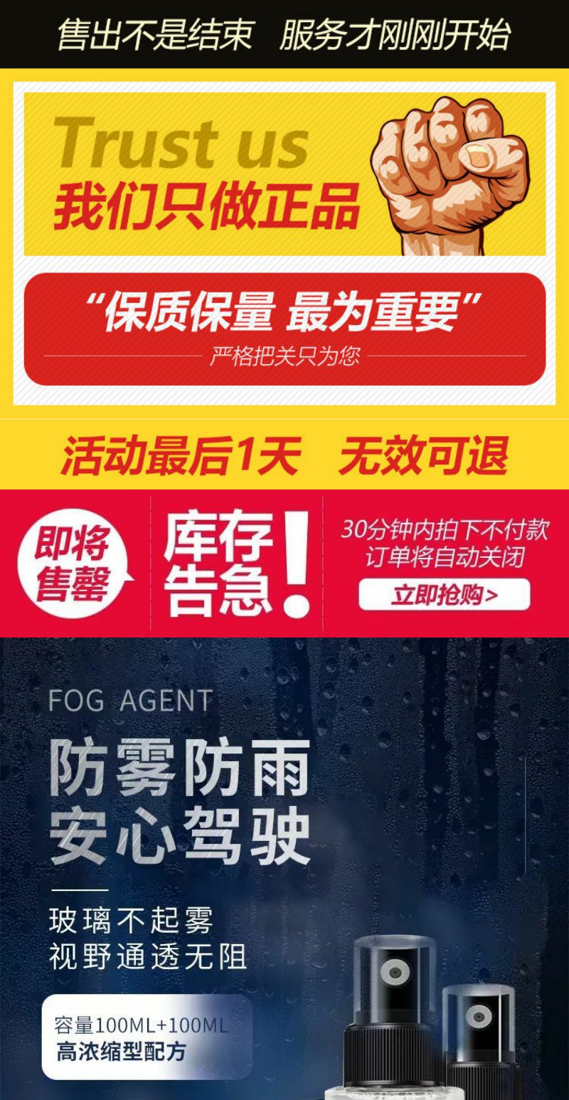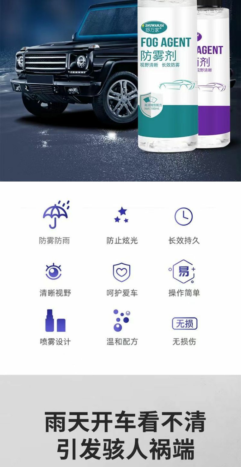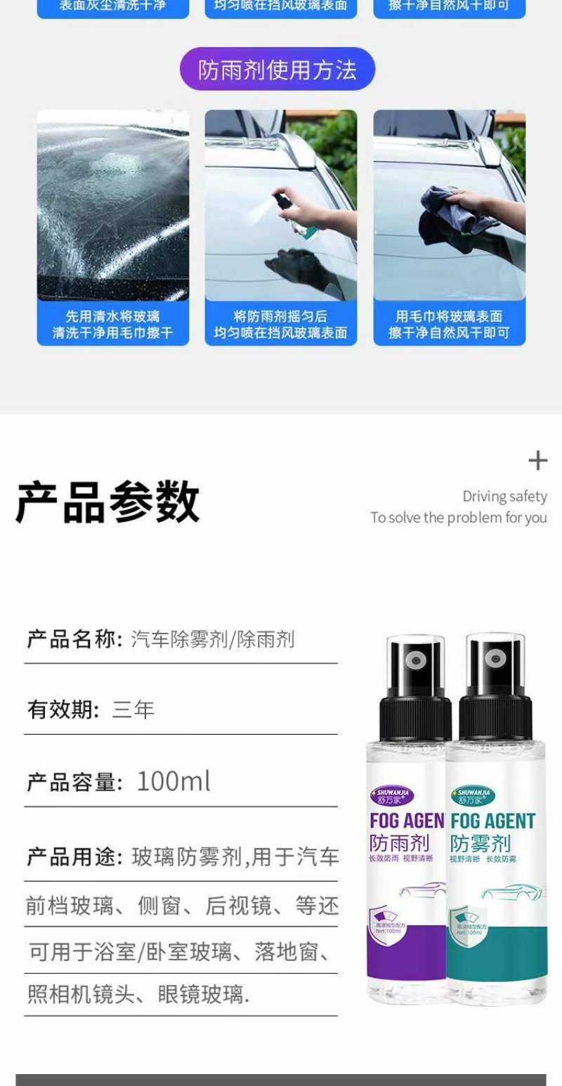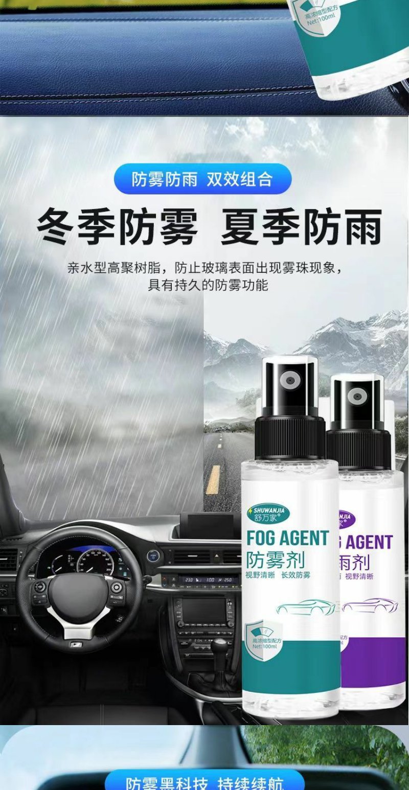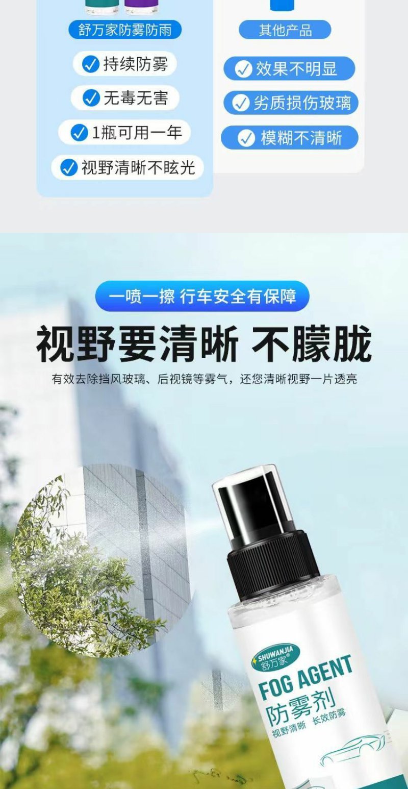 【车主必备 买一送一 两瓶装】舒万家 纳米防雾剂+防雨剂 汽车玻璃挡风车窗