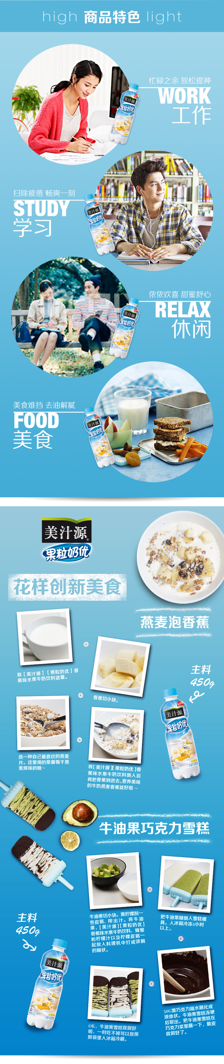 美汁源果粒奶优蜜桃味水果牛奶饮料450g/瓶