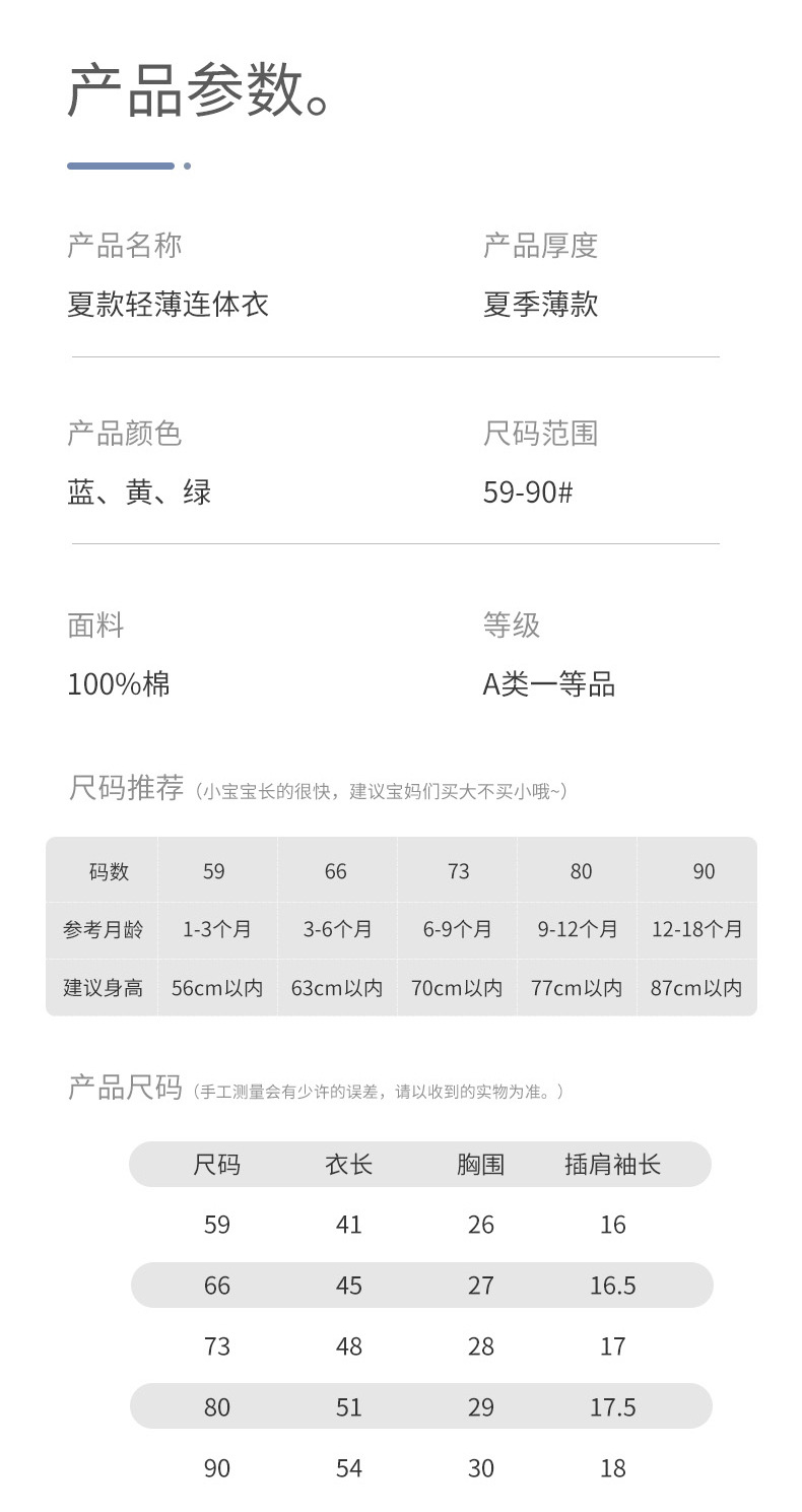 【甄选好棉 轻薄透气连体衣】宝宝连体衣婴儿衣服夏季短袖爬爬外出服装新生儿哈衣全棉睡衣