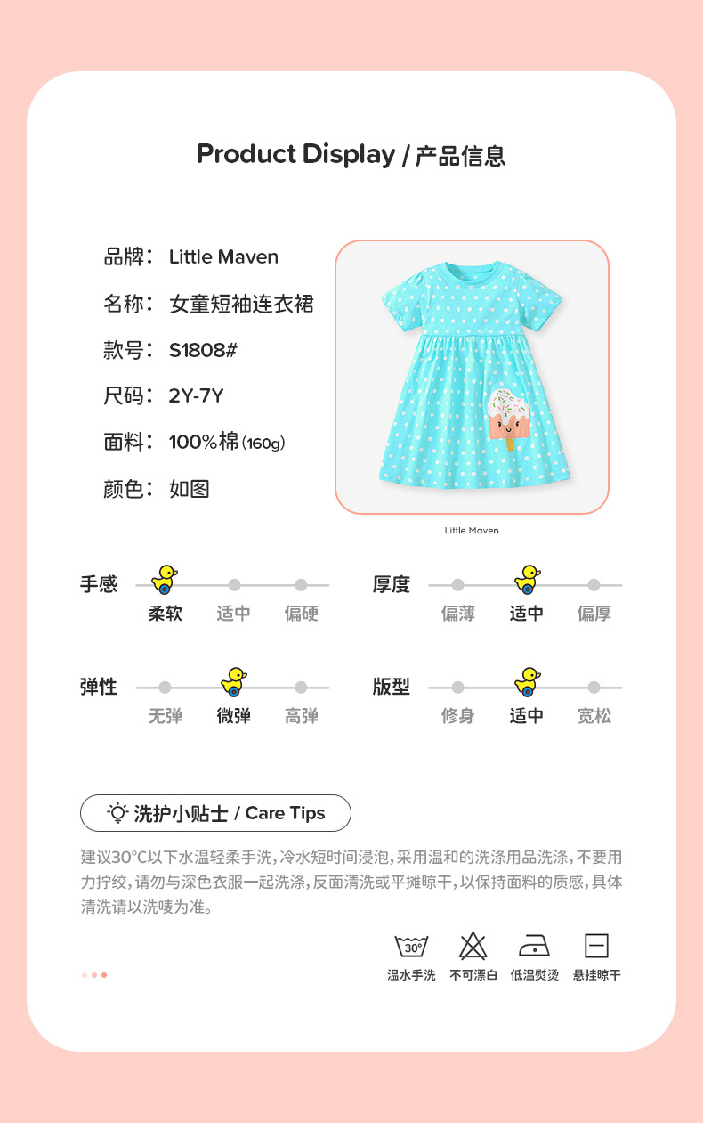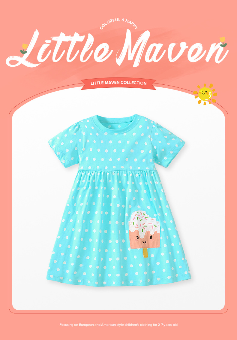 【休闲甜美波点裙】Little maven欧美卡通印花童裙夏季新款女童公主裙短袖儿童连衣裙