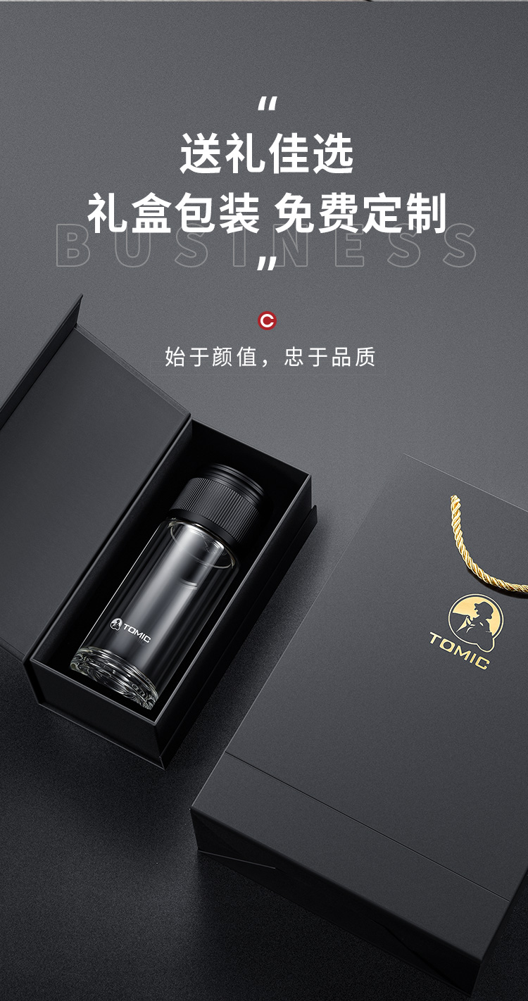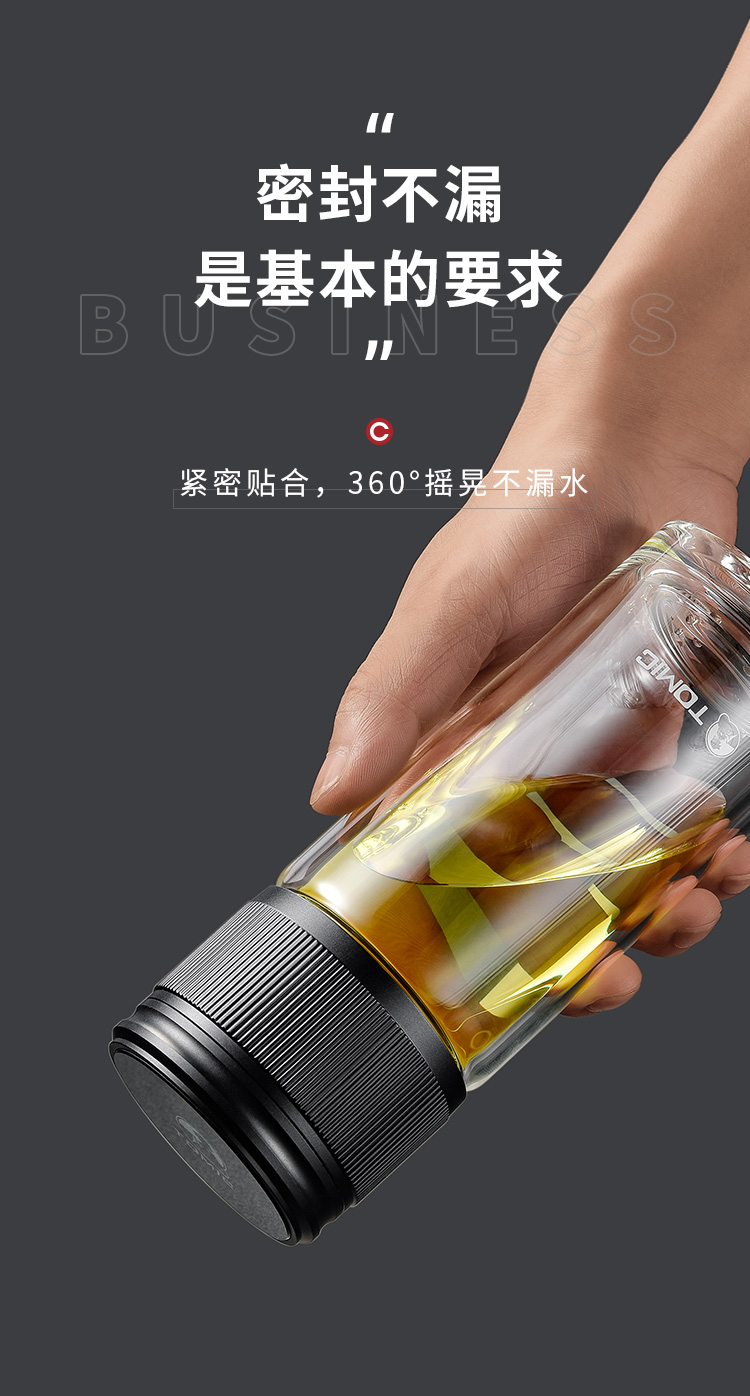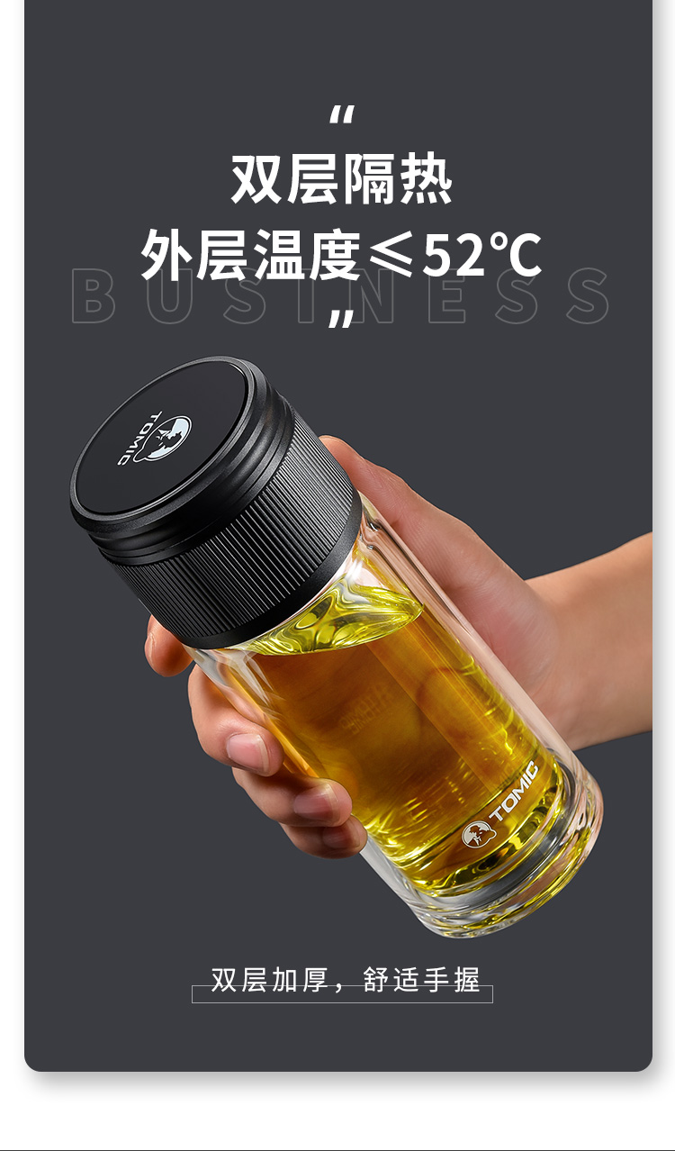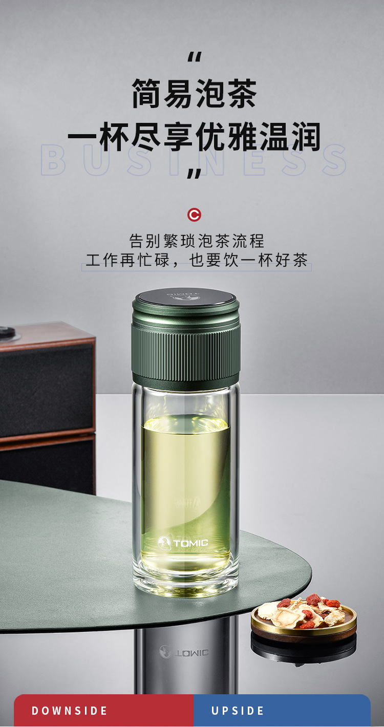 特美赢杯TOMIC博雅杯高档玻璃杯男双层隔热商务水杯便携茶水分离泡茶杯TG80725典雅绿