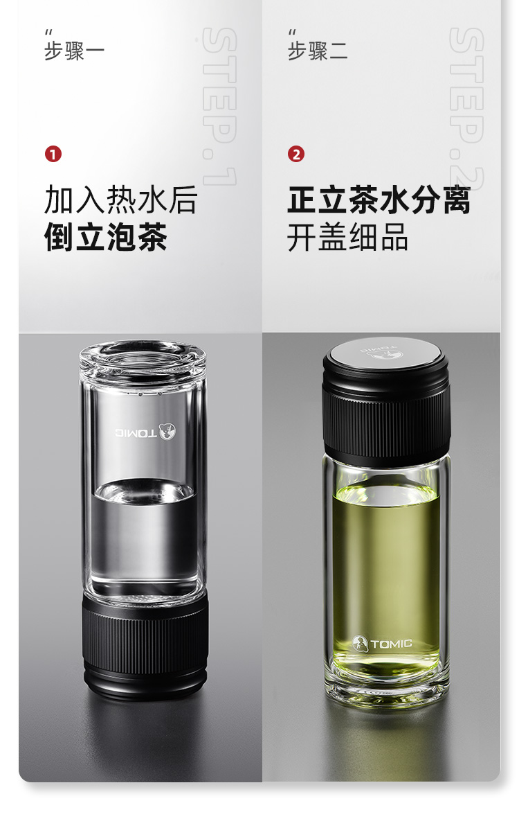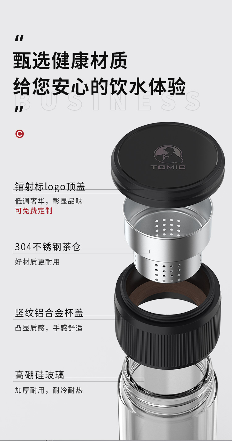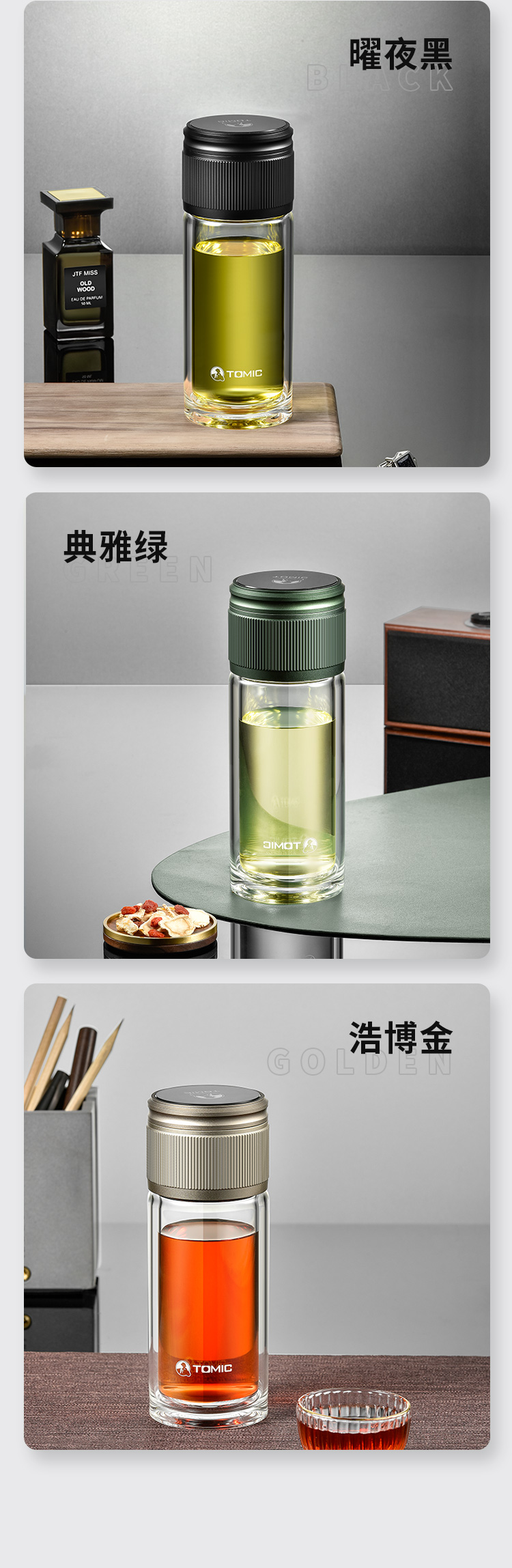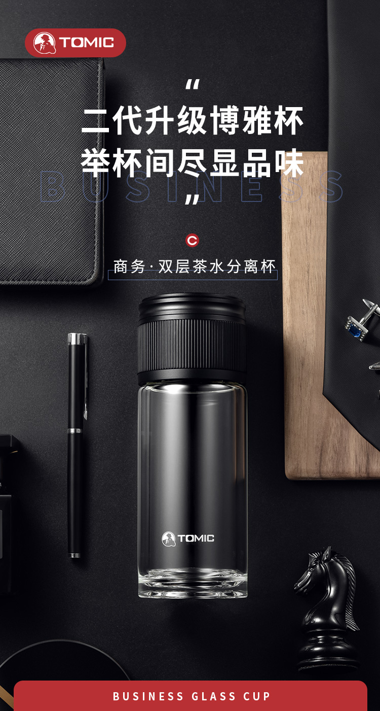 特美赢杯TOMIC博雅杯高档玻璃杯男双层隔热商务水杯便携茶水分离泡茶杯TG80725典雅绿