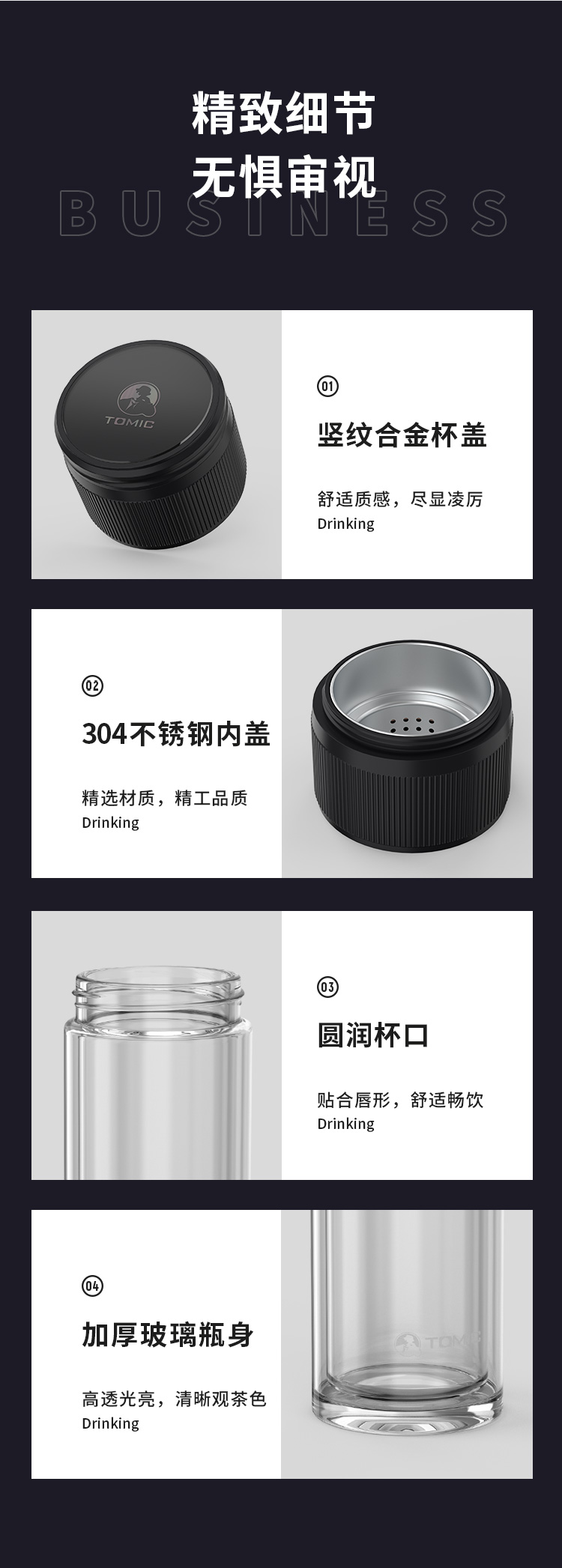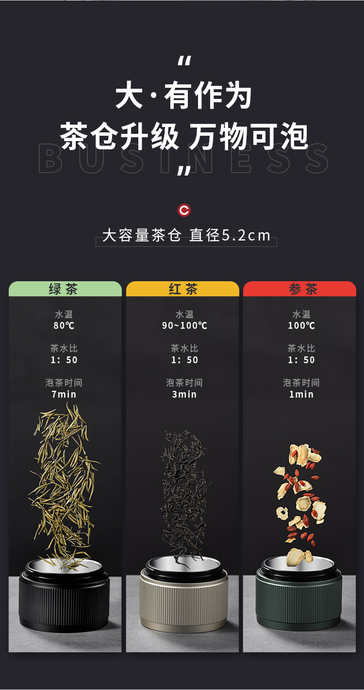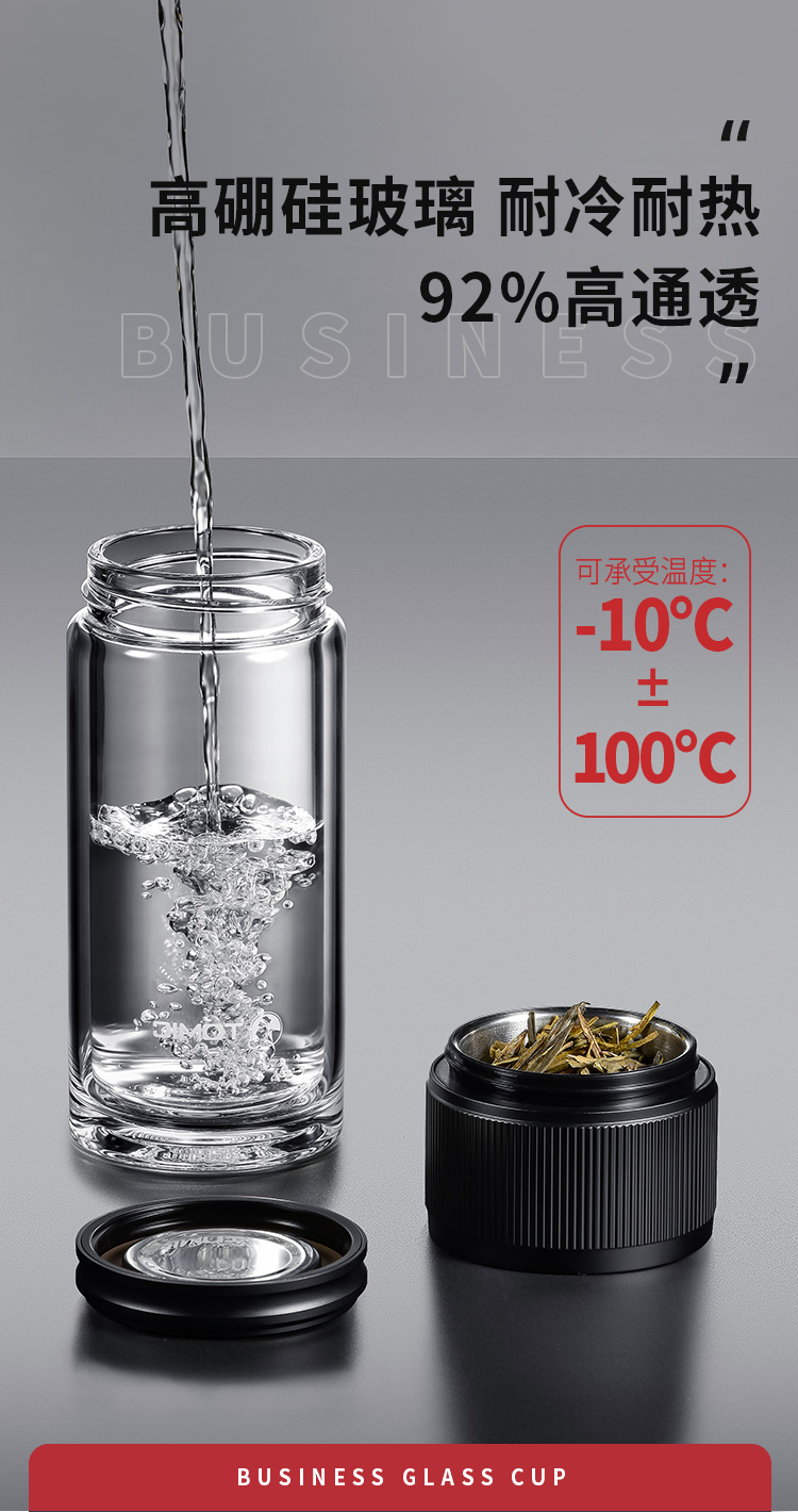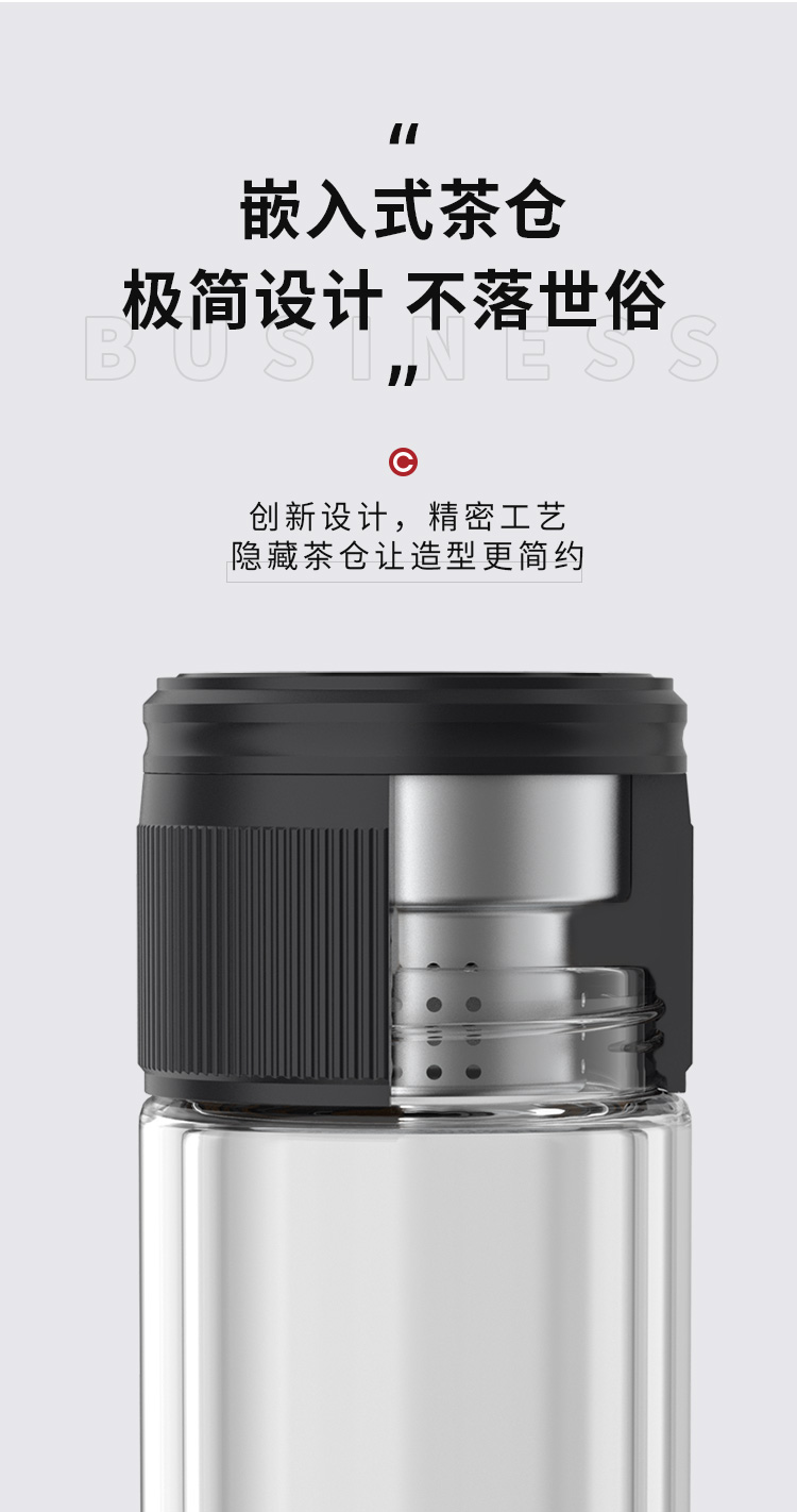 特美赢杯TOMIC博雅杯高档玻璃杯男双层隔热商务水杯便携茶水分离泡茶杯TG80725典雅绿