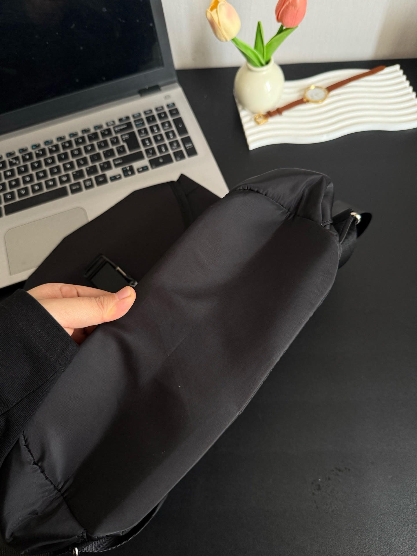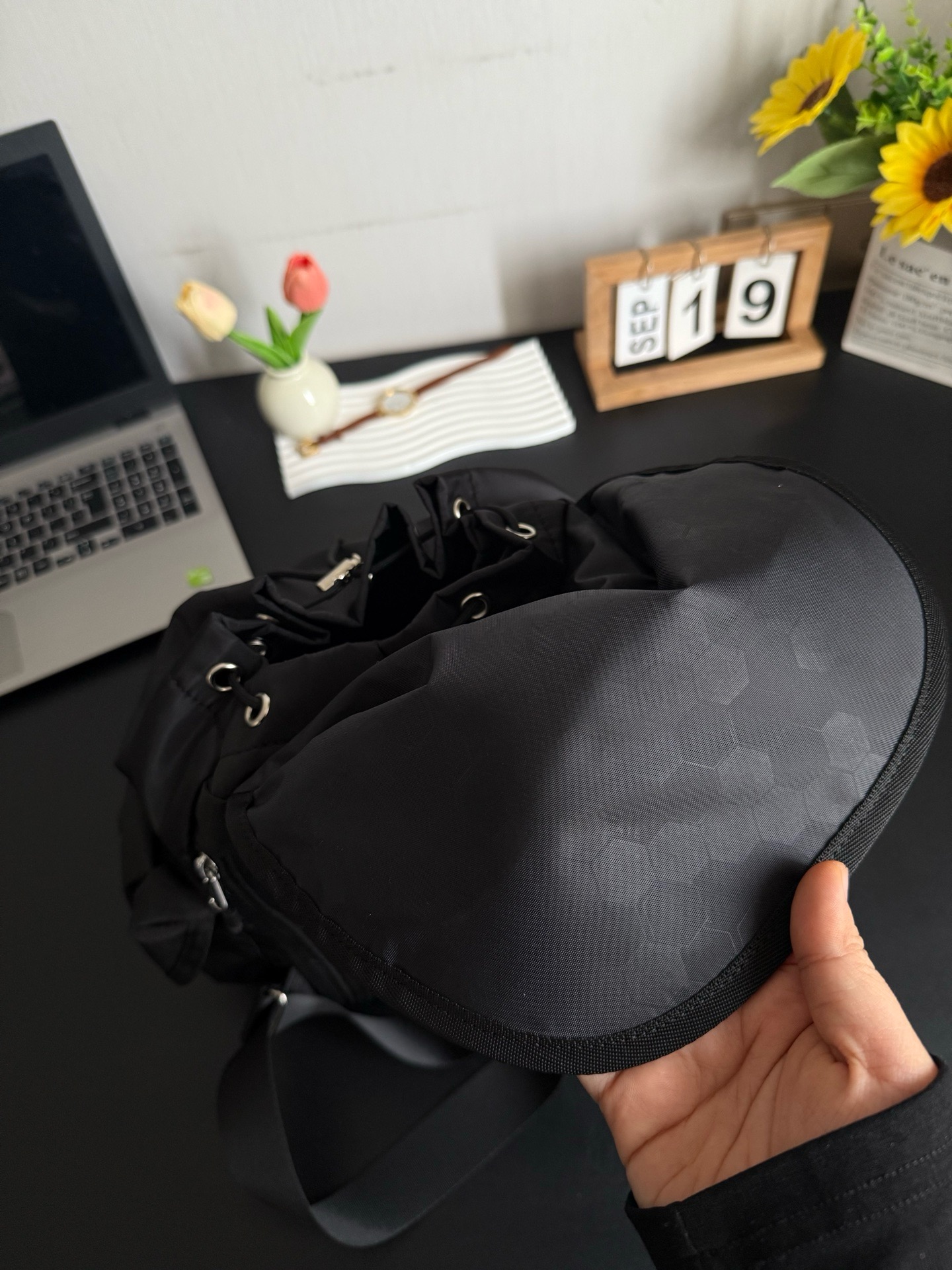 青岛代工,箭头情侣同款尼龙抽绳户外双肩包,代购一只一千四百多块的哈,全Y出货,全部都是贸易公司订单线订单,在售同步,品质没有丝毫区别。10L的容量,实用性非常强,日常出门绝对足够了,用料都是订单标准来的,工艺严谨,每一只都是按照入柜的标准出货。日常通勤、出门搭配、健身都可以哈,颜值与实用性并存的一款,推荐推荐‼️男女通用旅行户外便携超轻束口双肩包!外料采用高级尼龙,里布采用加厚涤纶里布,整个包采用全色系搭配,色泽一致,防泼水工作运动两相宜。面料全部都是客供来的斜纹尼龙材质,整个布面稳固性很好,耐磨耐造还有一定的拒水效果哈,日常使用很好打理,自重轻盈不压身,质感足足的。