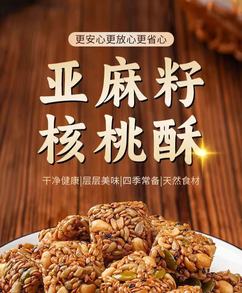 【福利❗️19.9抢60包🔥亚麻籽核桃仁酥】甄选品质原料制作,亚麻籽 核桃仁 白芝麻 麦芽糖,酥香掉渣,核桃香浓郁,甜度清淡不齁口,早餐代餐下午茶休闲茶点心小吃零食饼干L