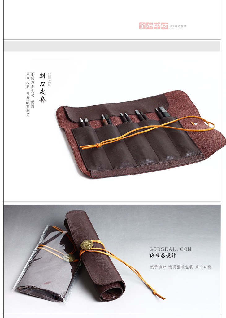金石印坊 篆刻刀专用皮套(多支款) 便携五口刀套 可放10支刻刀