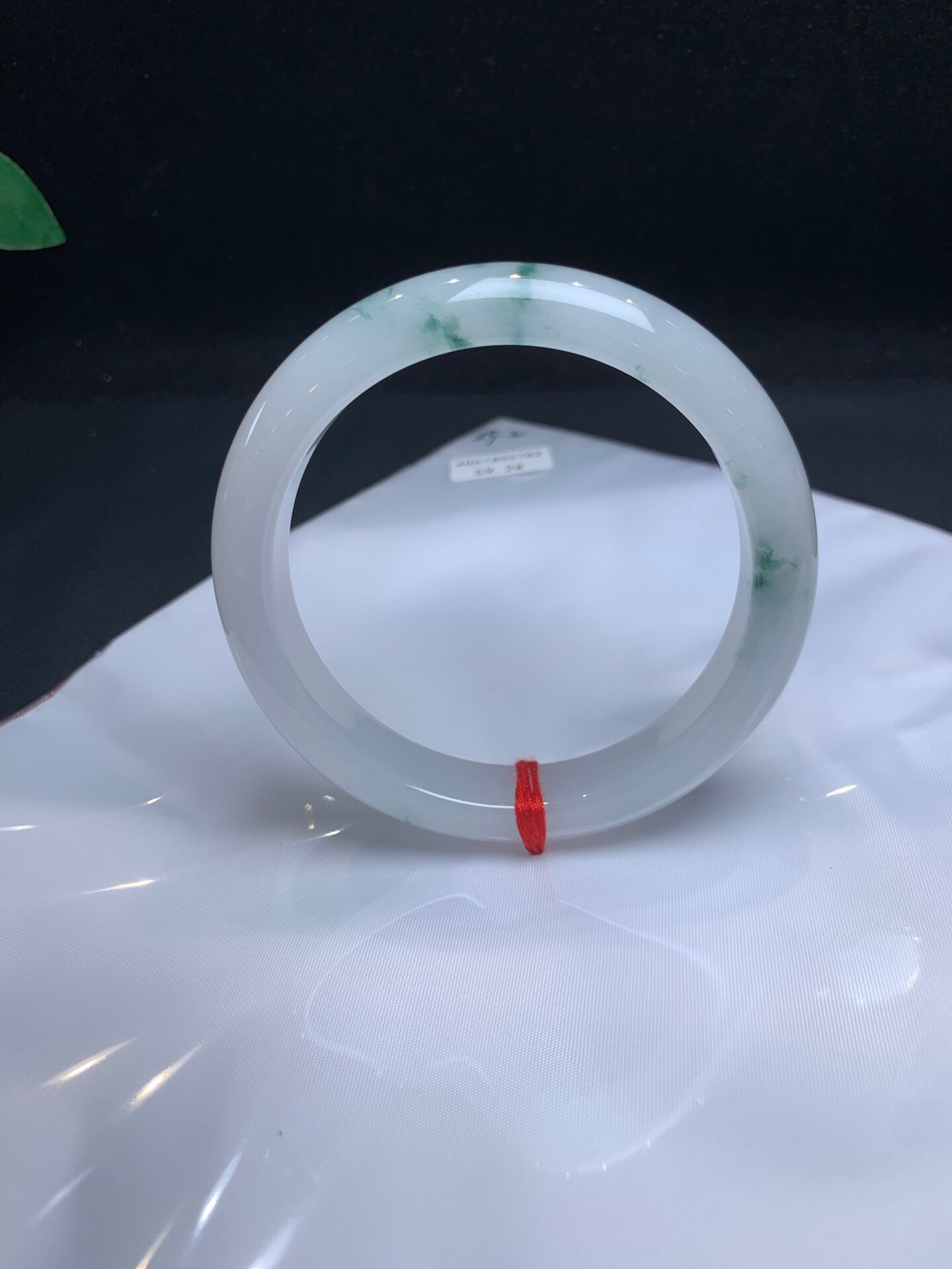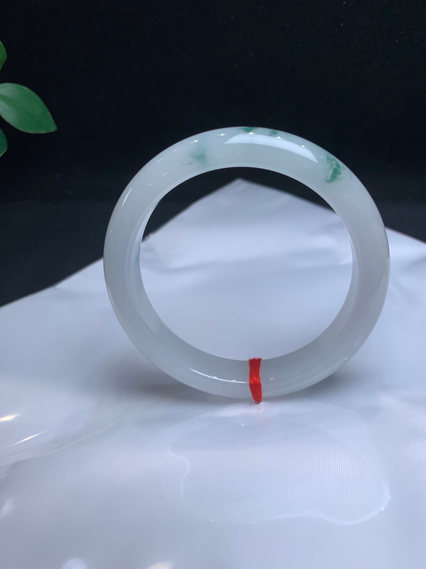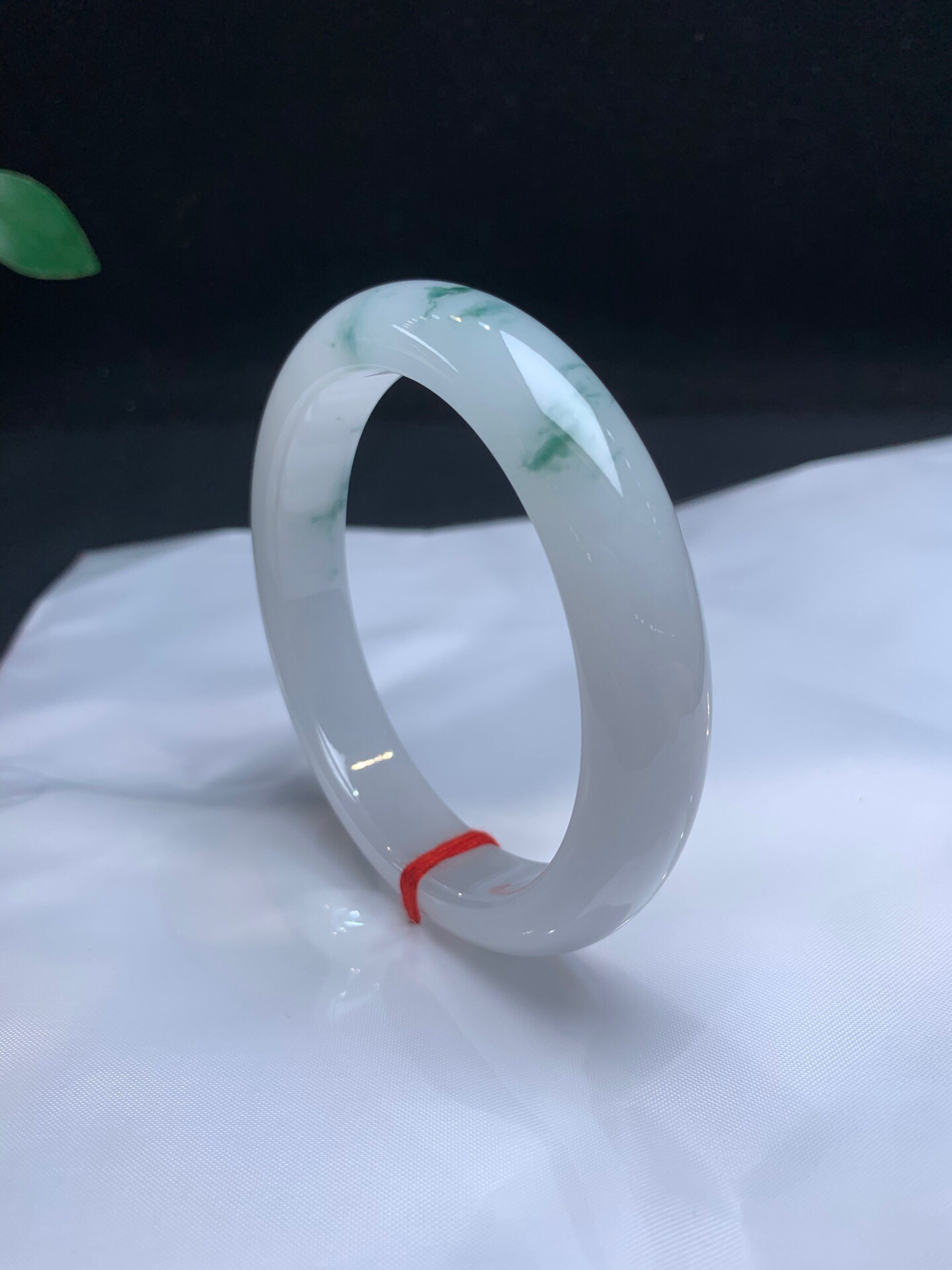 620317,59.2飘花手镯,12.3-7.8mm,清新白底。飘一截蓝花,润润的,干净清爽,完美的。超值价💰35800 #优石客珠宝#香玉荟萃