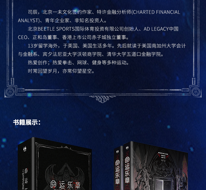 司辰,北京一未文化签约作家、特许金融分析师(Charted Financial Analyst)、青年企业家、非知名投资人。