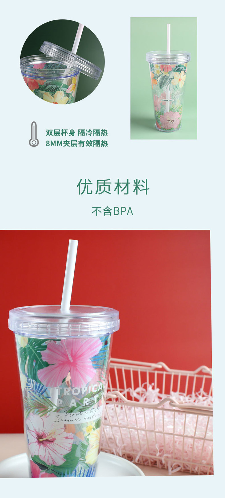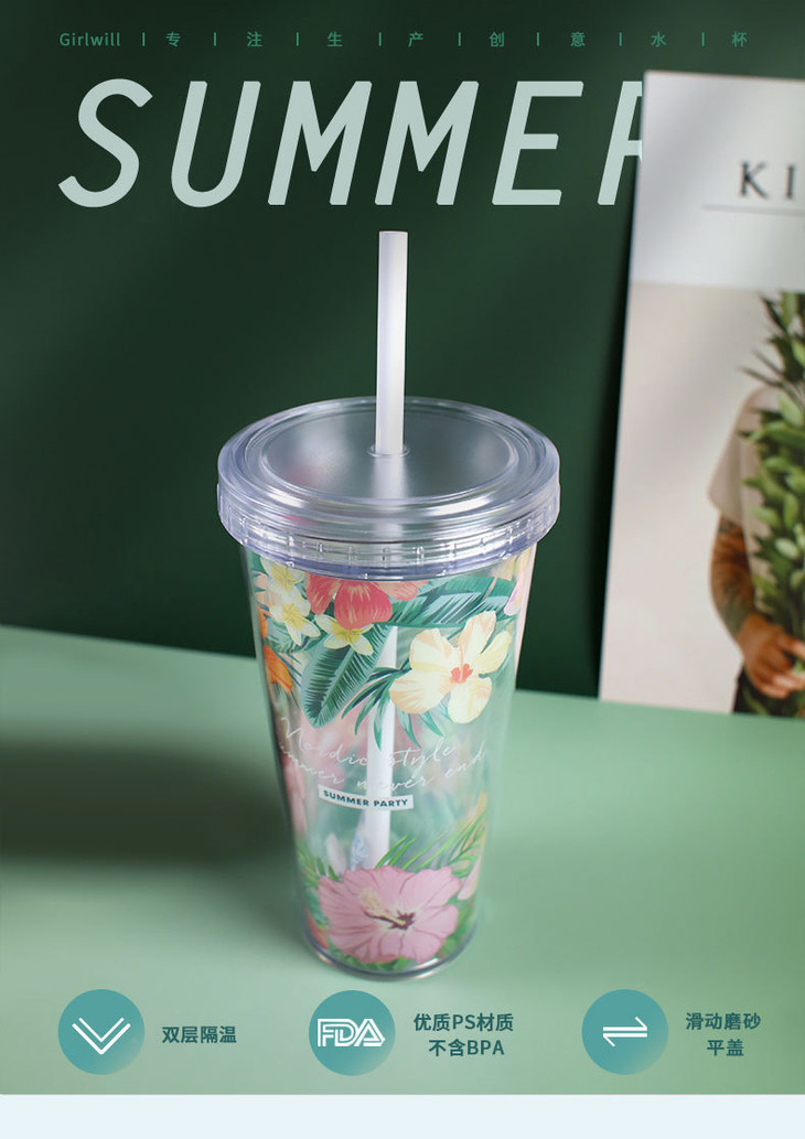 【居家日用】夏日吸管杯塑料水杯儿童礼品创意学生夏天随手杯子女