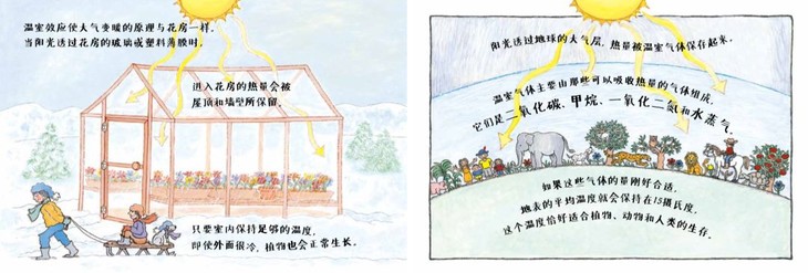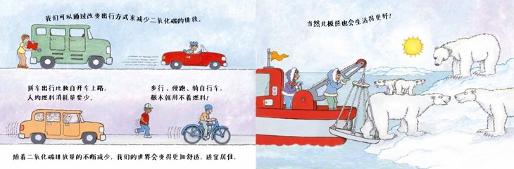 这套书有好几本都和环境有关,地球、水、温室效应等,这些主题本身就是对环境的关怀。而每一册的后几页,作者都会提出我们目前面临的环境问题,以及如何从小做起,善待我们的世界。这种知识点的交叉,出现在整套的各本书中,让孩子能更全面地看待一个科学主题,加深孩子们的记忆。