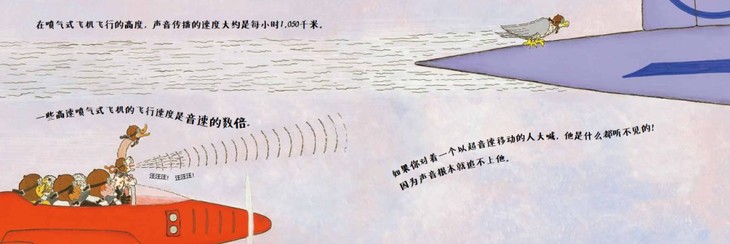 在《什么比猎豹的速度快》书中,飞机上的小狗叫得撕心裂肺,坐在超音速飞机上的游隼却听不见,为什么呢?比音速还快的速度就叫啥?“超音速”!汪汪的叫声当然追不上了!