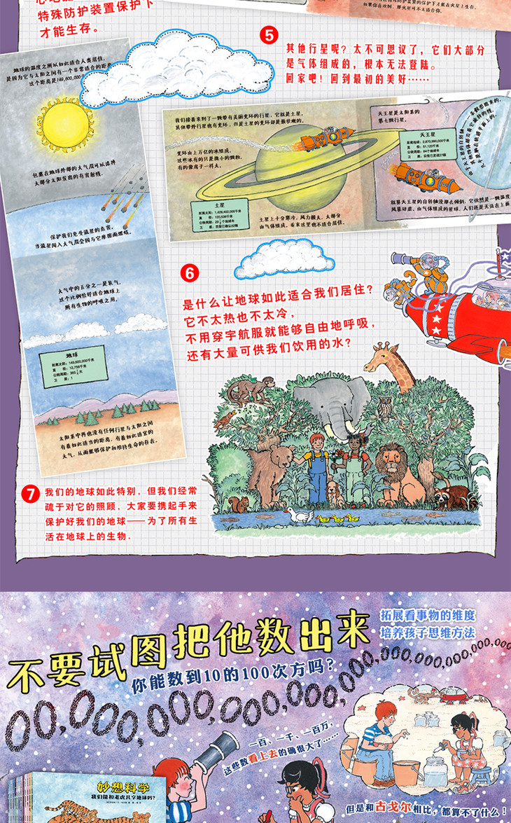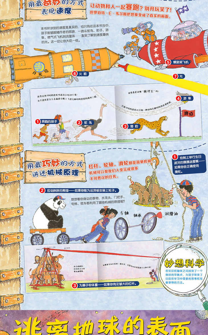 这套书的目的就是保留孩子对世界的好奇心,每一本都以孩子感兴趣的问题为起点,用深入浅出、形象浅显的对比,一个知识点套一个知识点,娃儿看起来不会枯燥