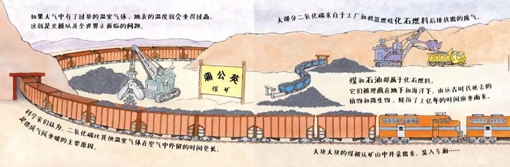 接着讲温室气体(尤其是二氧化碳)是怎样产生的:大部分的二氧化碳的产生是来自化石燃料的燃烧,如煤和石油。