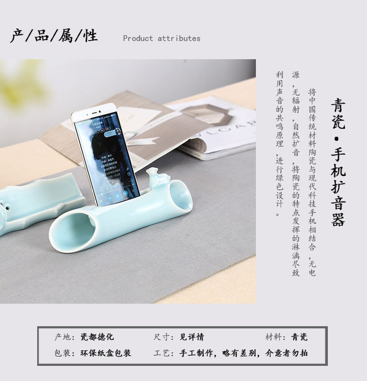 【家居摆件】龙泉青瓷手机支架小米苹果通用扩音器现代休闲家居车载摆件