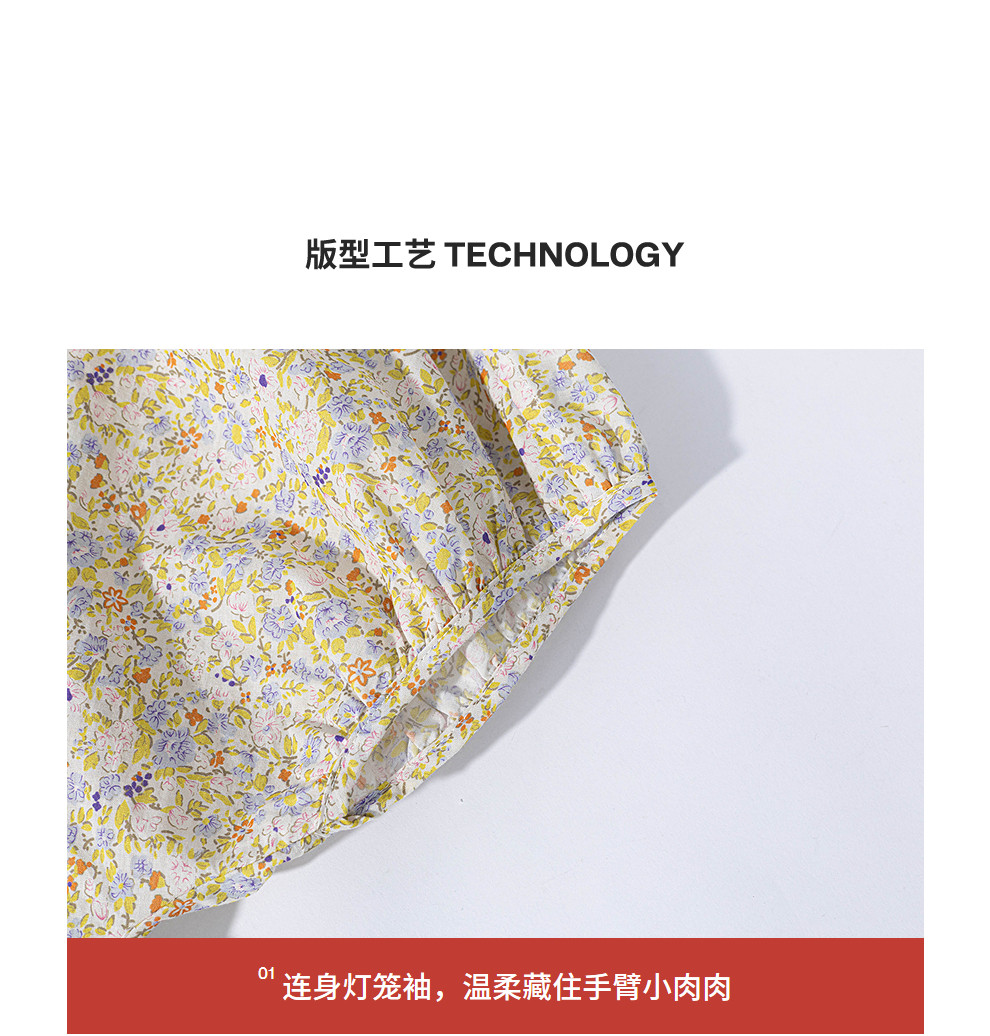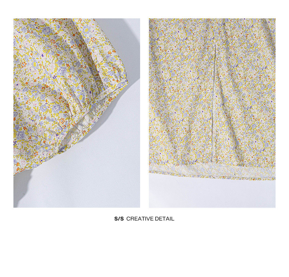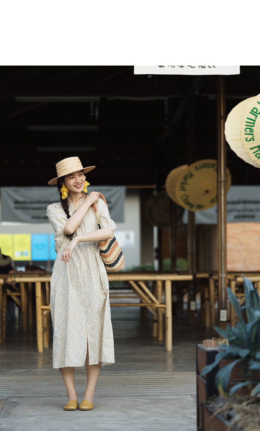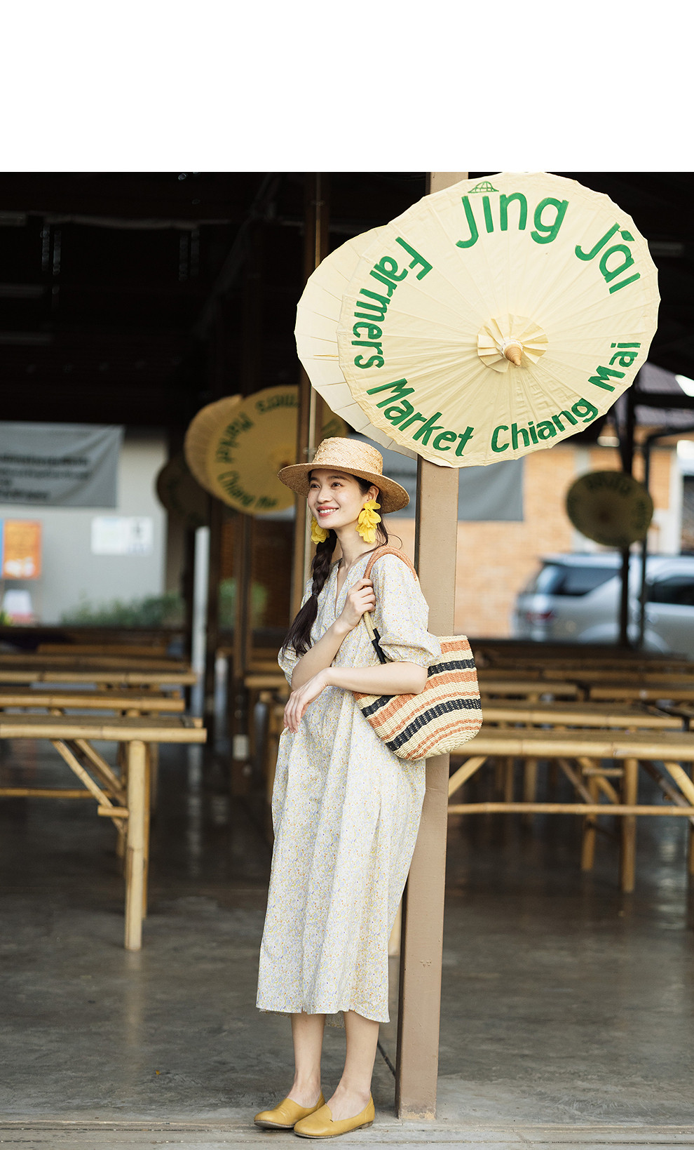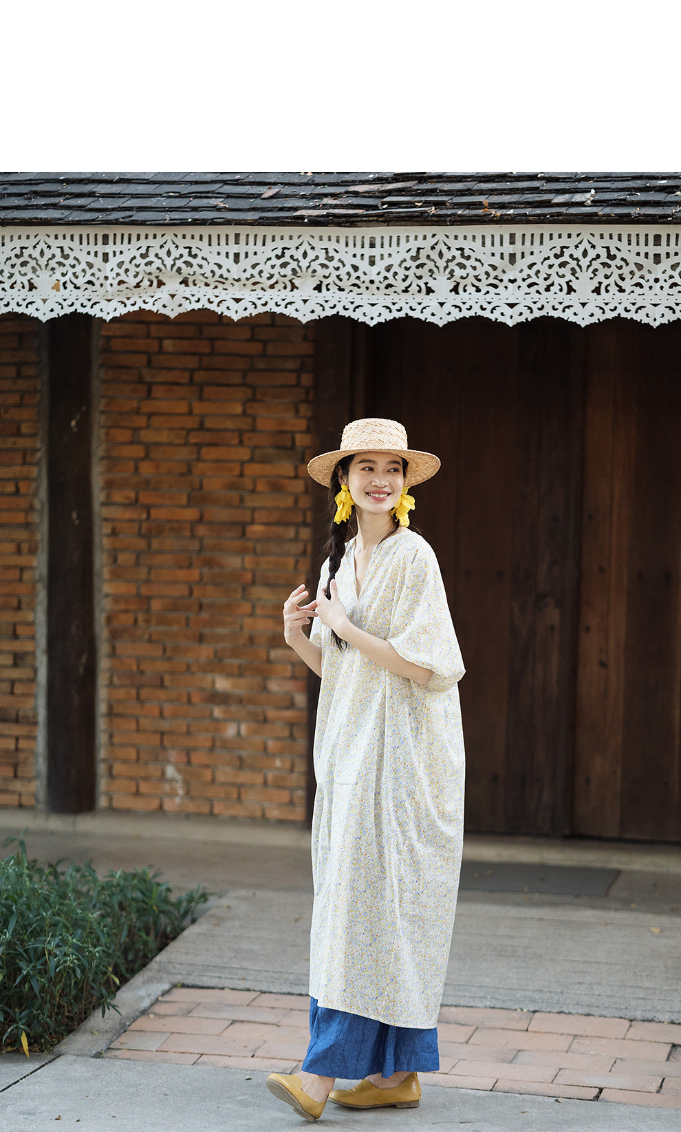 绽放164朵/纯棉复古撞色碎花v领中袖连衣裙松弛感宽松连身袖长裙