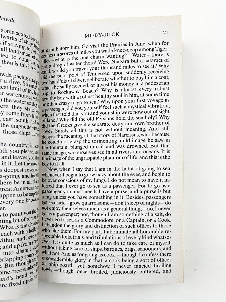Moby-Dickis a novel by American writer Herman Melville, published in 1851 during the period of the American Renaissance. The novel was a commercial failure and out of print at the time of the author’s death in 1891, but during the 20th century, its reputation as a Great American Novel was established. William Faulkner confessed he wished he had written it himself, and D. H. Lawrence called it “one of the strangest and most wonderful books in the world”, and “the greatest book of the sea ever written”.“Call me Ishmael” is among world literature’s most famous opening sentences.