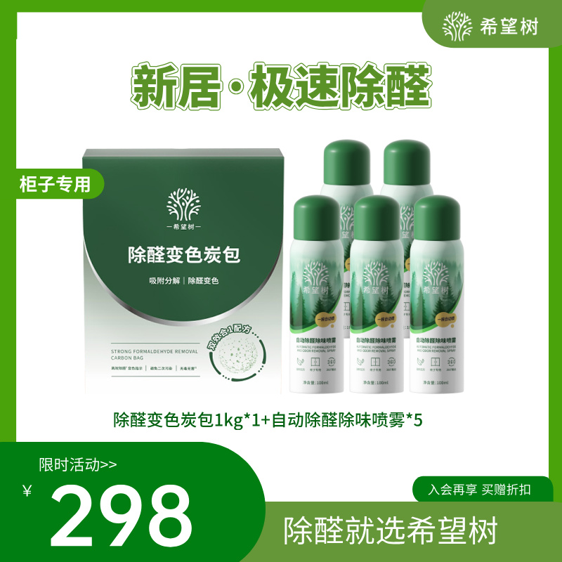 【5罐+1盒】适用50-70平希望树柜子专用·自动除醛除味喷雾*5瓶+除醛变色炭包*1盒组合套餐 希望树新房装修·除醛套餐