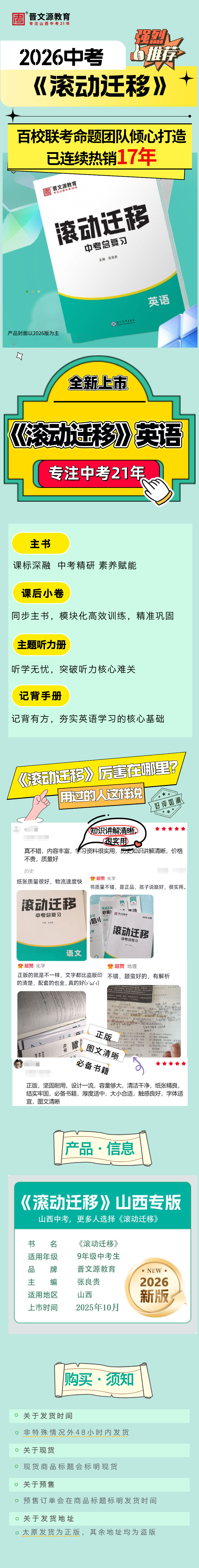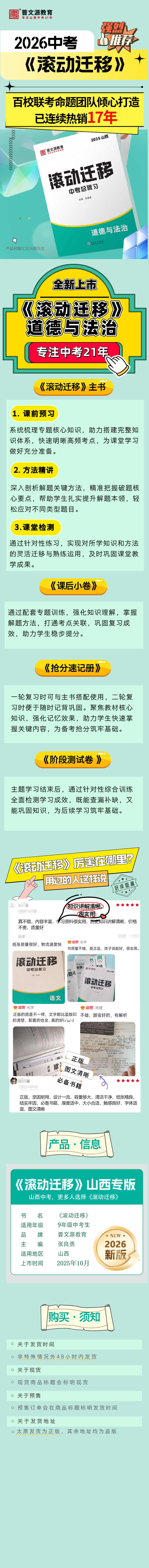 (赠品有限)26版山西九年级《滚动迁移》配激活码,送仿真预测卷