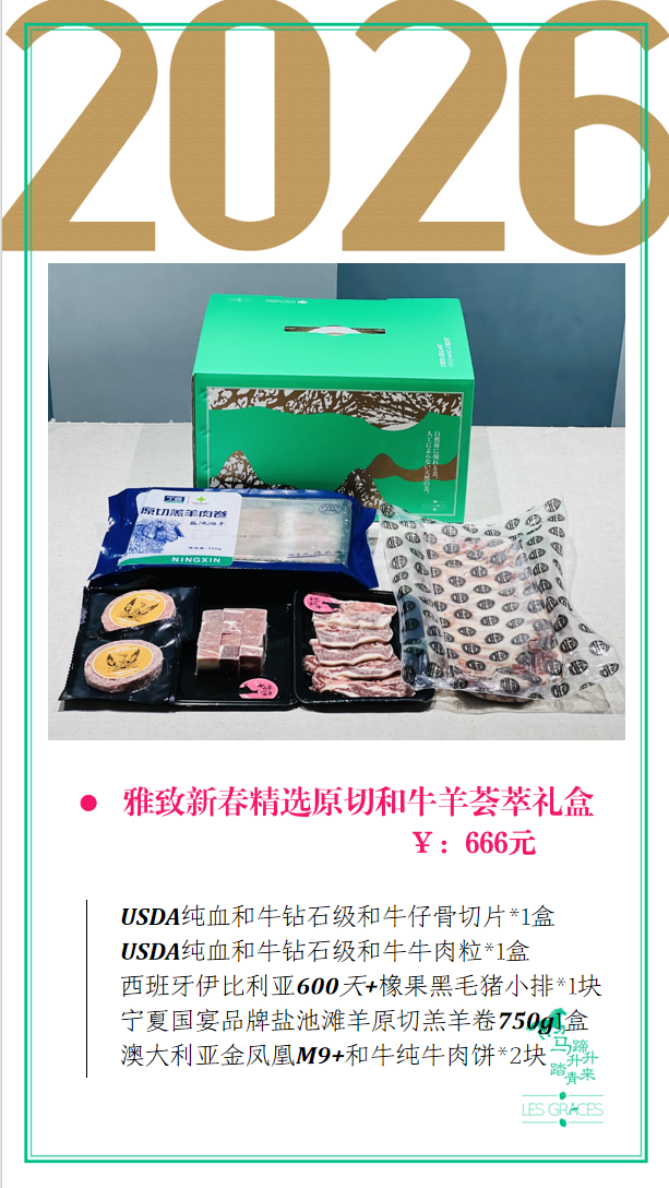 雅致新春精选原切和牛羊荟萃礼盒 | 新鲜牛排可自由搭配,精致包装,更显礼盒的精美!(温馨提示:产品为季节性产品,缺货会进行等值调换成其他产品!!!)