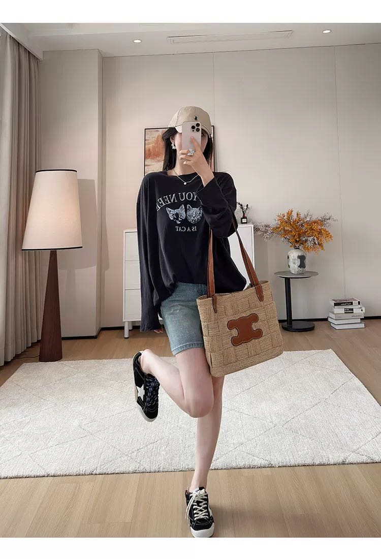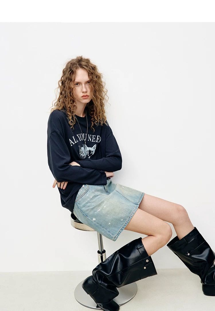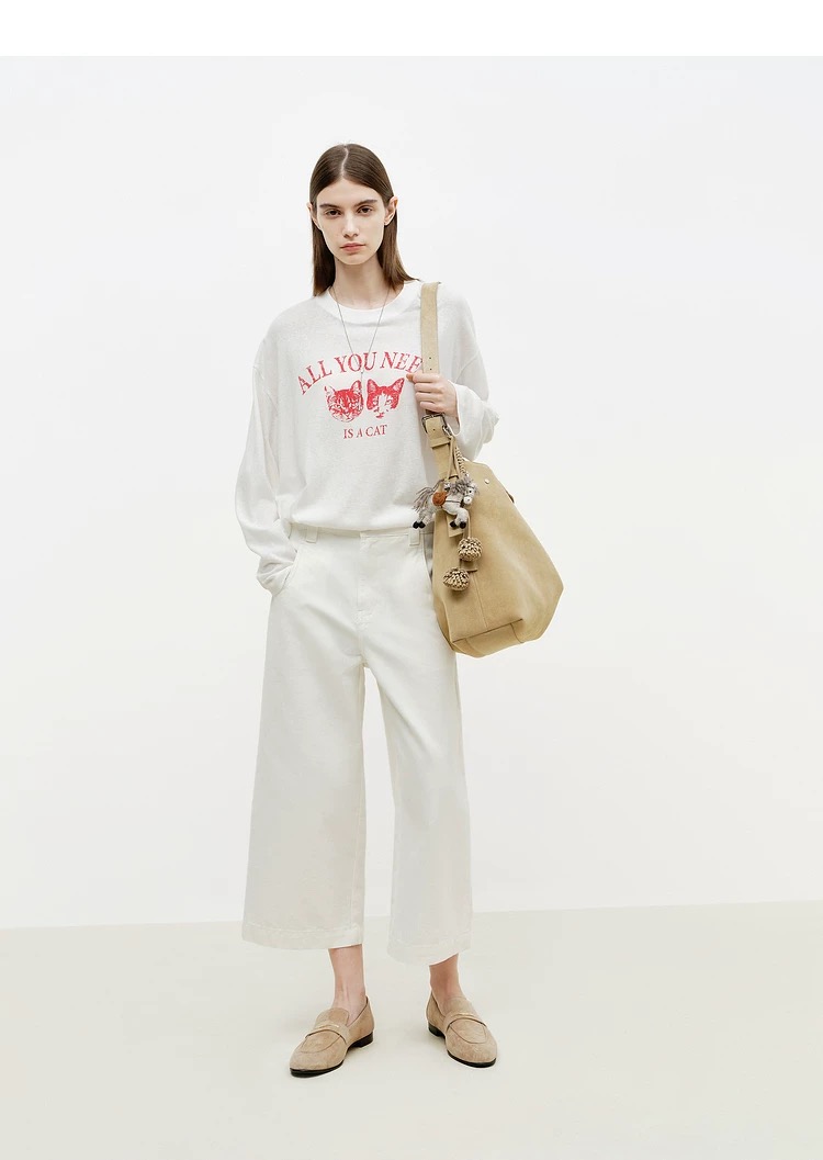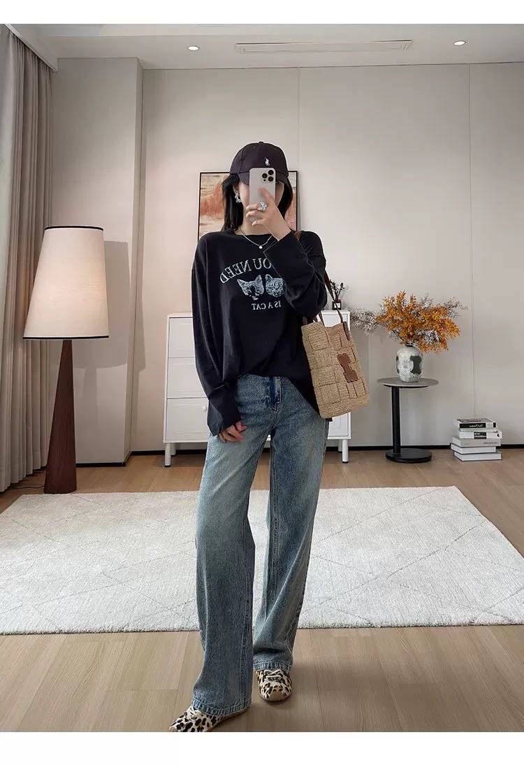 宽松的直身版型,适度的衣身空间,上身遮肉不拖沓圆领领型风格随性休闲,对各种脸型的包容度也很好。