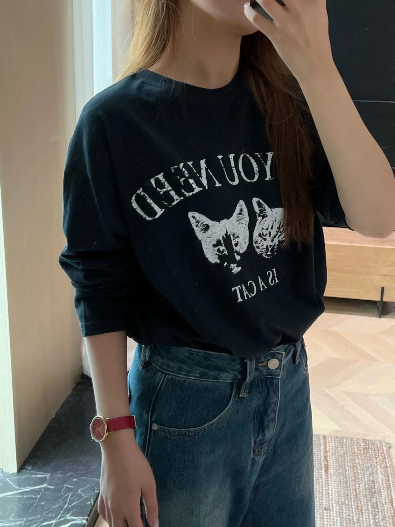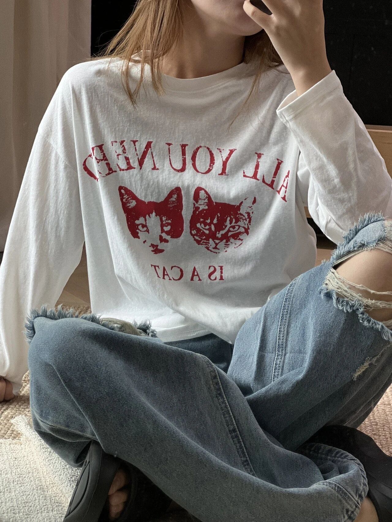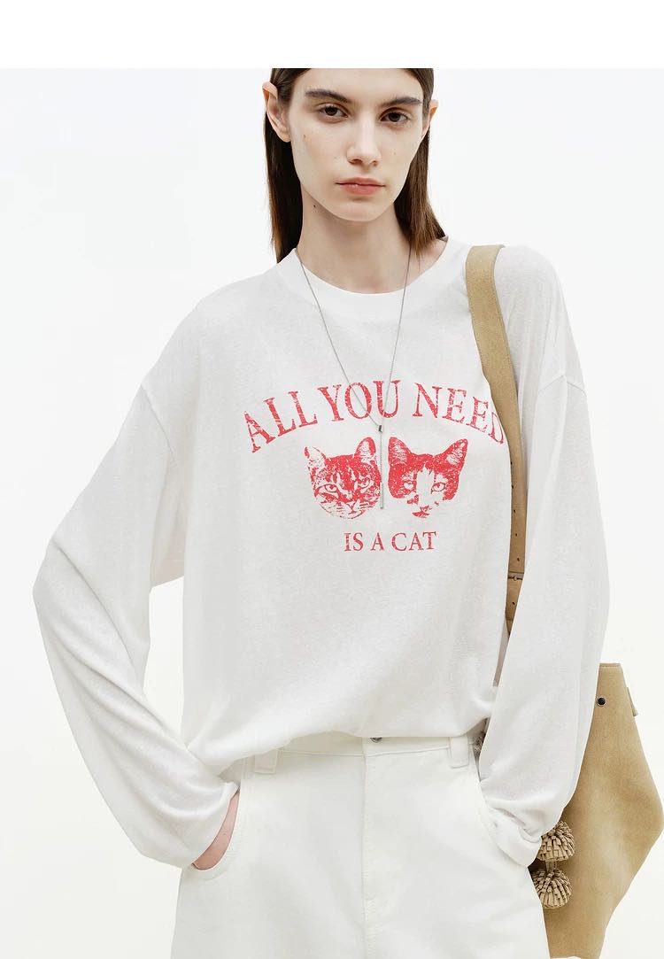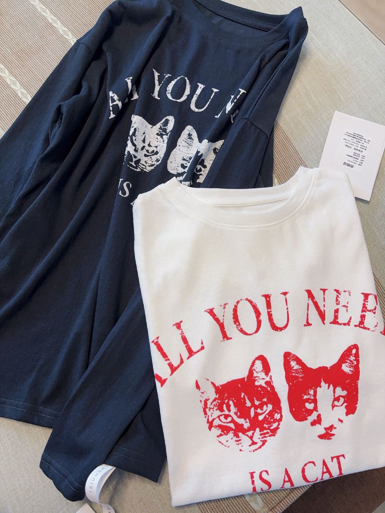 是一款基础印花BALL YOU NEED IS A CAT 🐱 一件T恤,承包你的全部快乐!萌宠印花,慵懒感拉满,穿上它,连心情都变得软乎乎~”