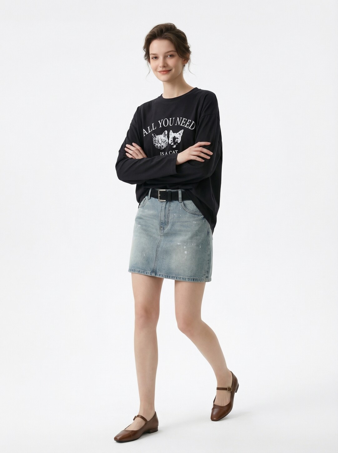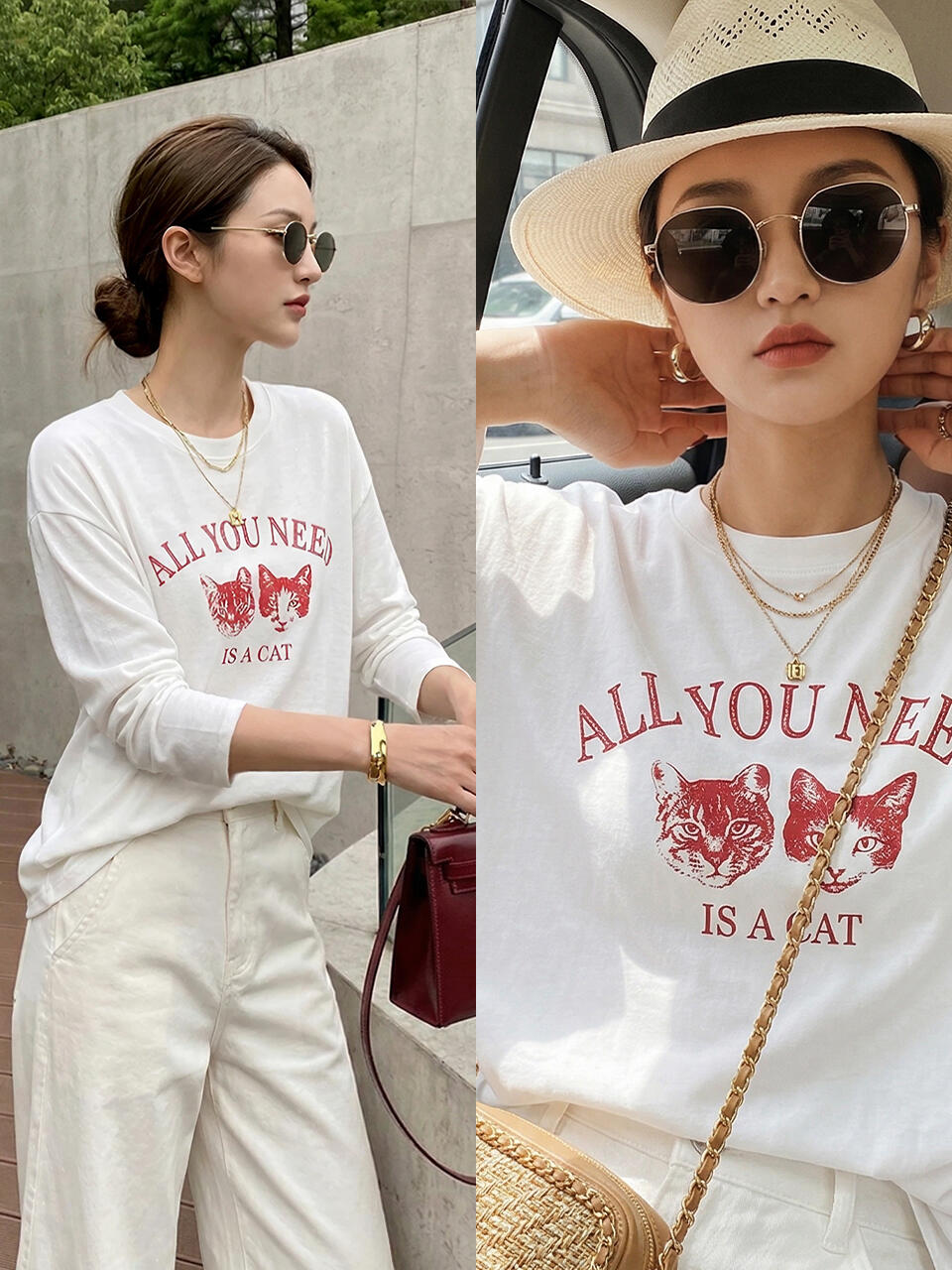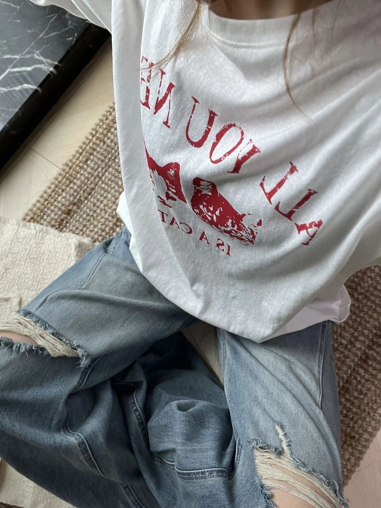 是一款基础印花BALL YOU NEED IS A CAT 🐱 一件T恤,承包你的全部快乐!萌宠印花,慵懒感拉满,穿上它,连心情都变得软乎乎~”