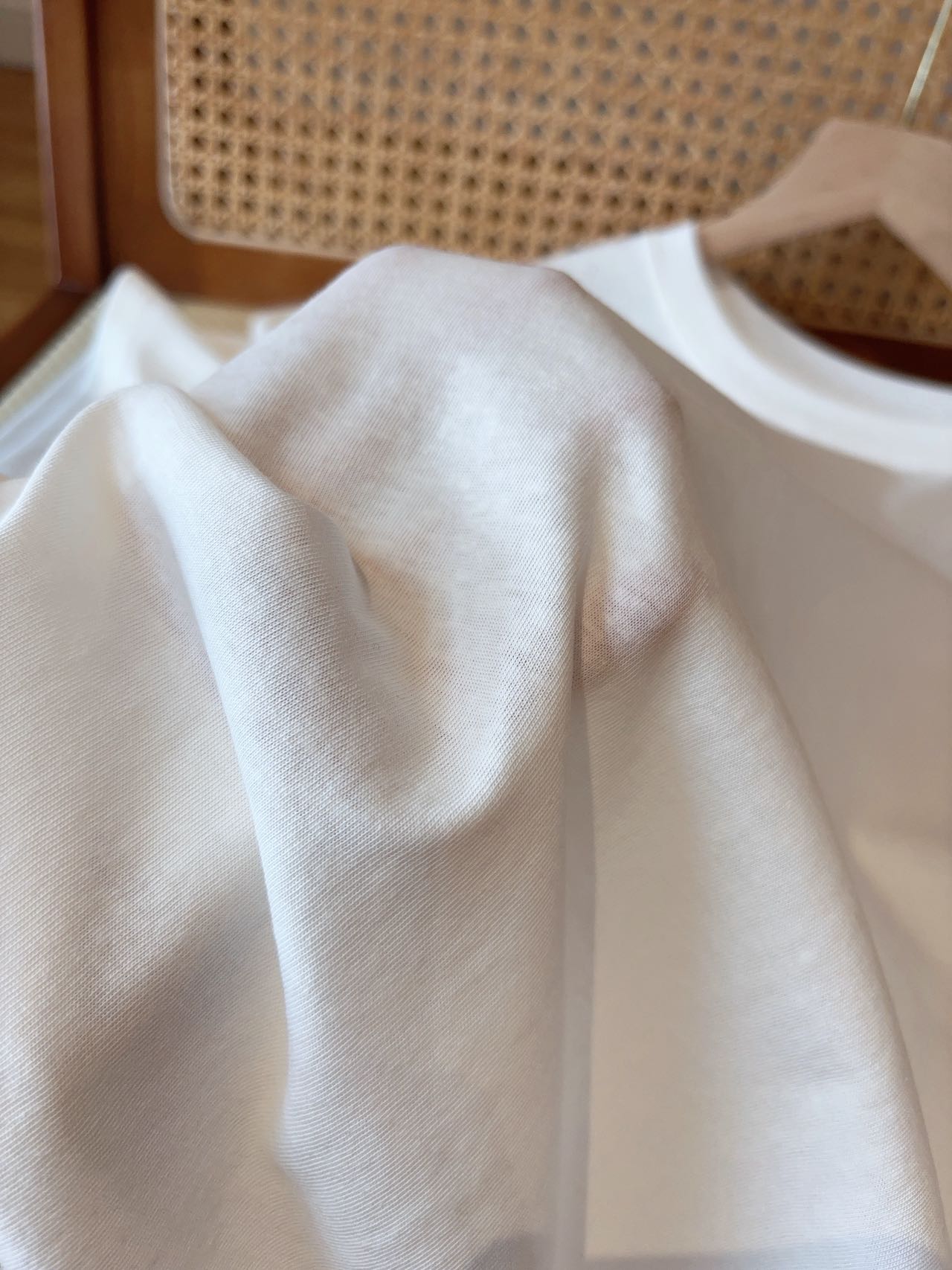 上身轻盈不压身,减少纯棉面料易皱、易变形的问题,面料具备一定的延展性,穿着更舒适。