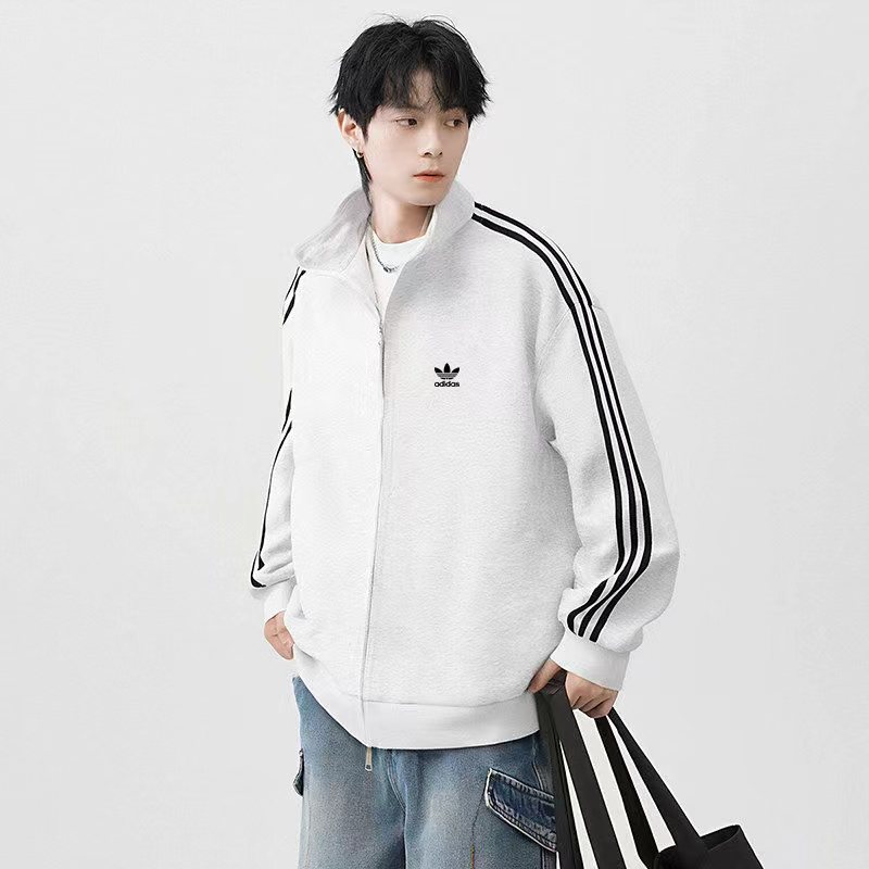 三叶草休闲撞色三杠连帽拉链卫衣外套,名副其实的百穿不厌系列,os版型上身效果超赞,三个配色都是超好看的,三个色也都巨好搭,太宝藏了,夹克外套的设计,这款太有心思了,下身随便配,绝绝子,男女同款情侣款哦