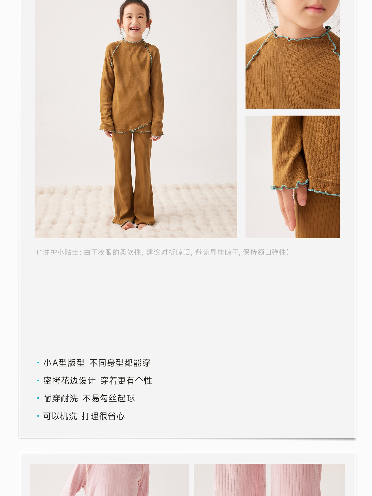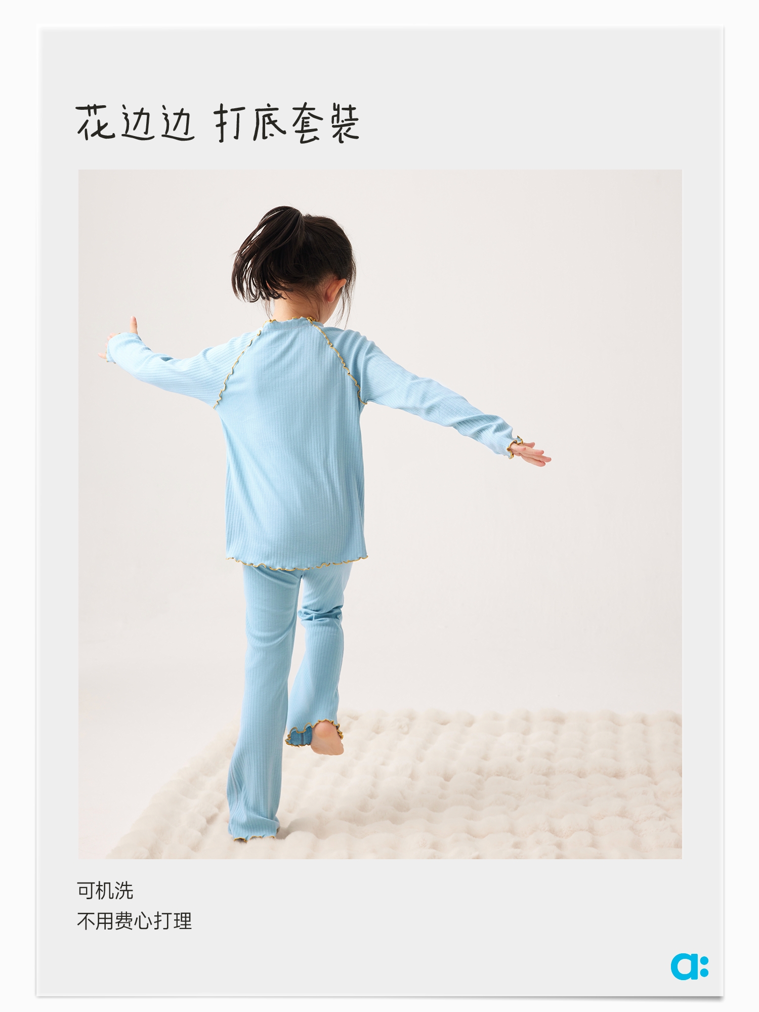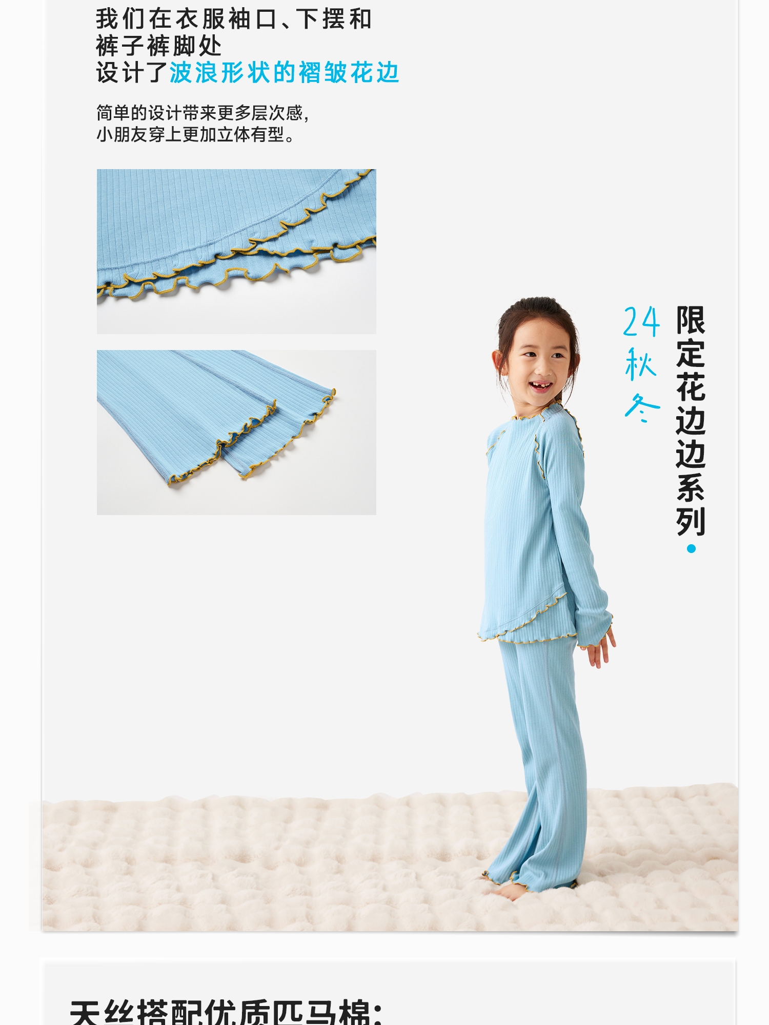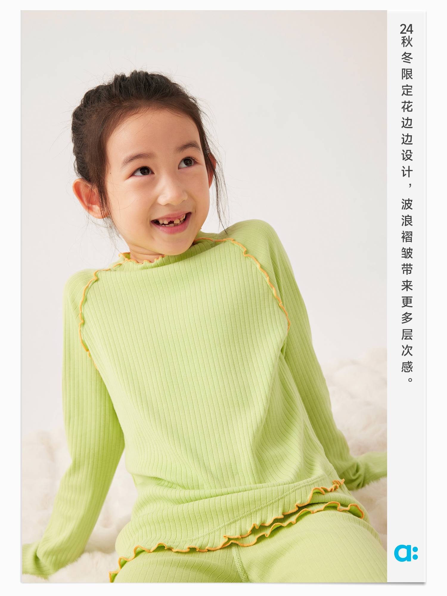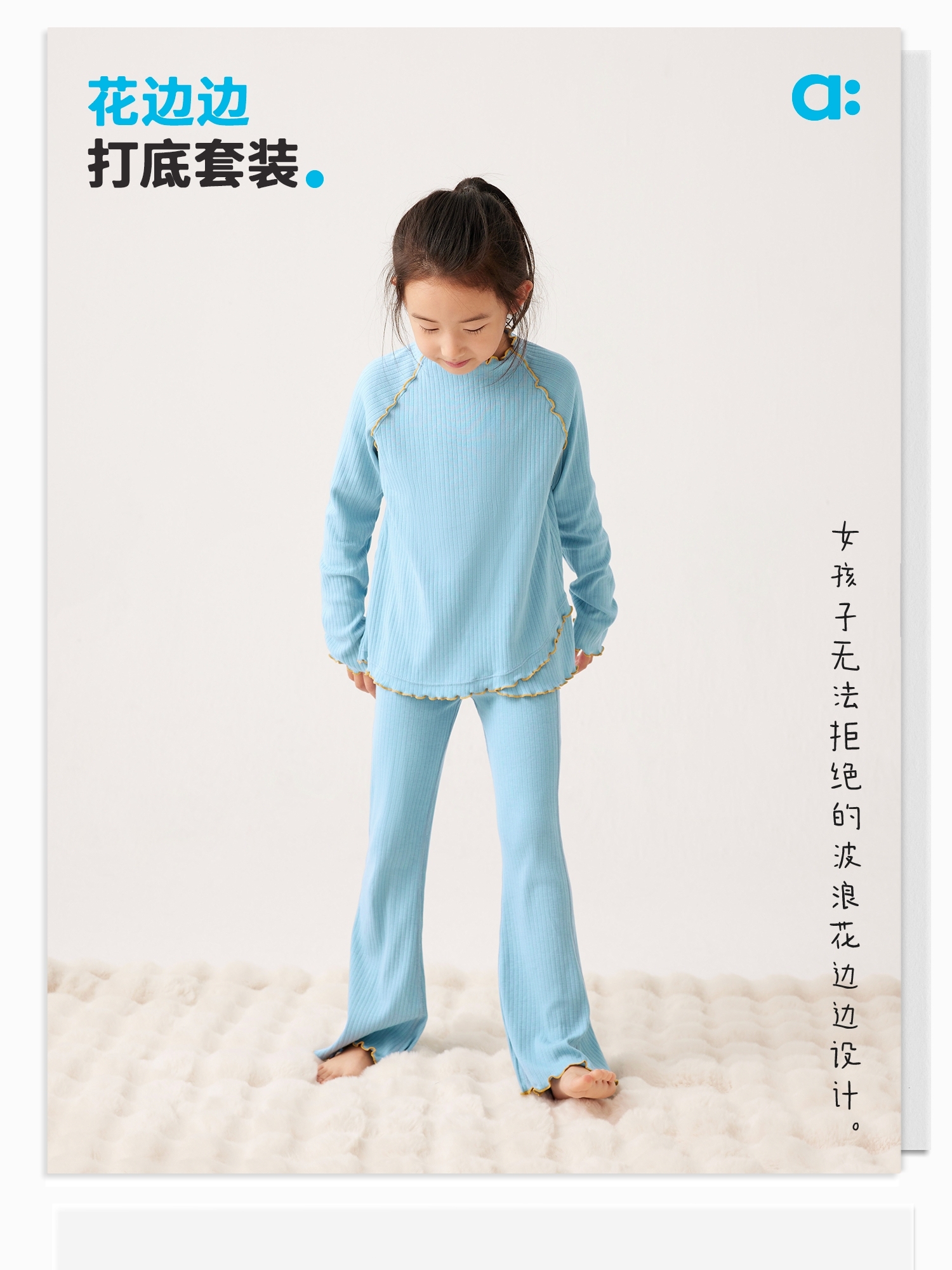 【秋Vol.3】幼岚童装花边边打底套装柔软舒适透气24秋季新款儿童男女童睡衣