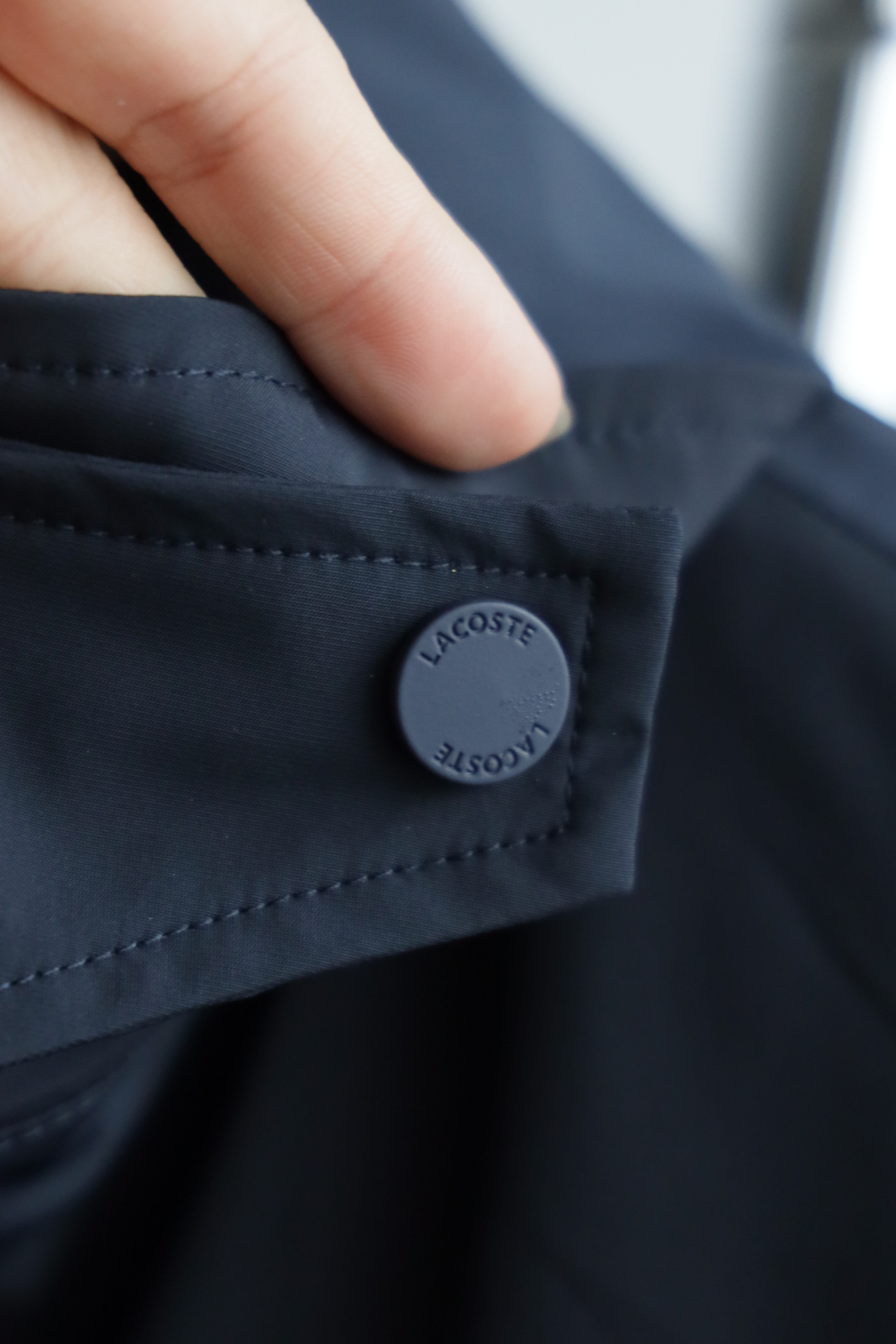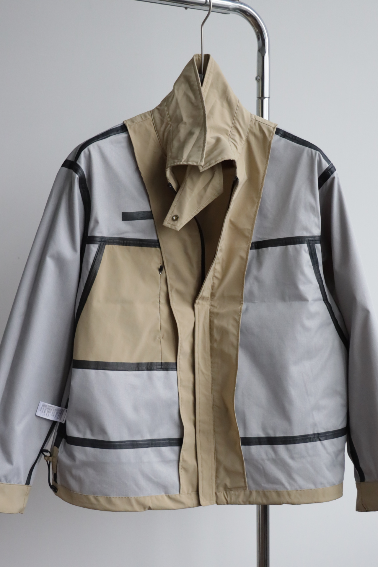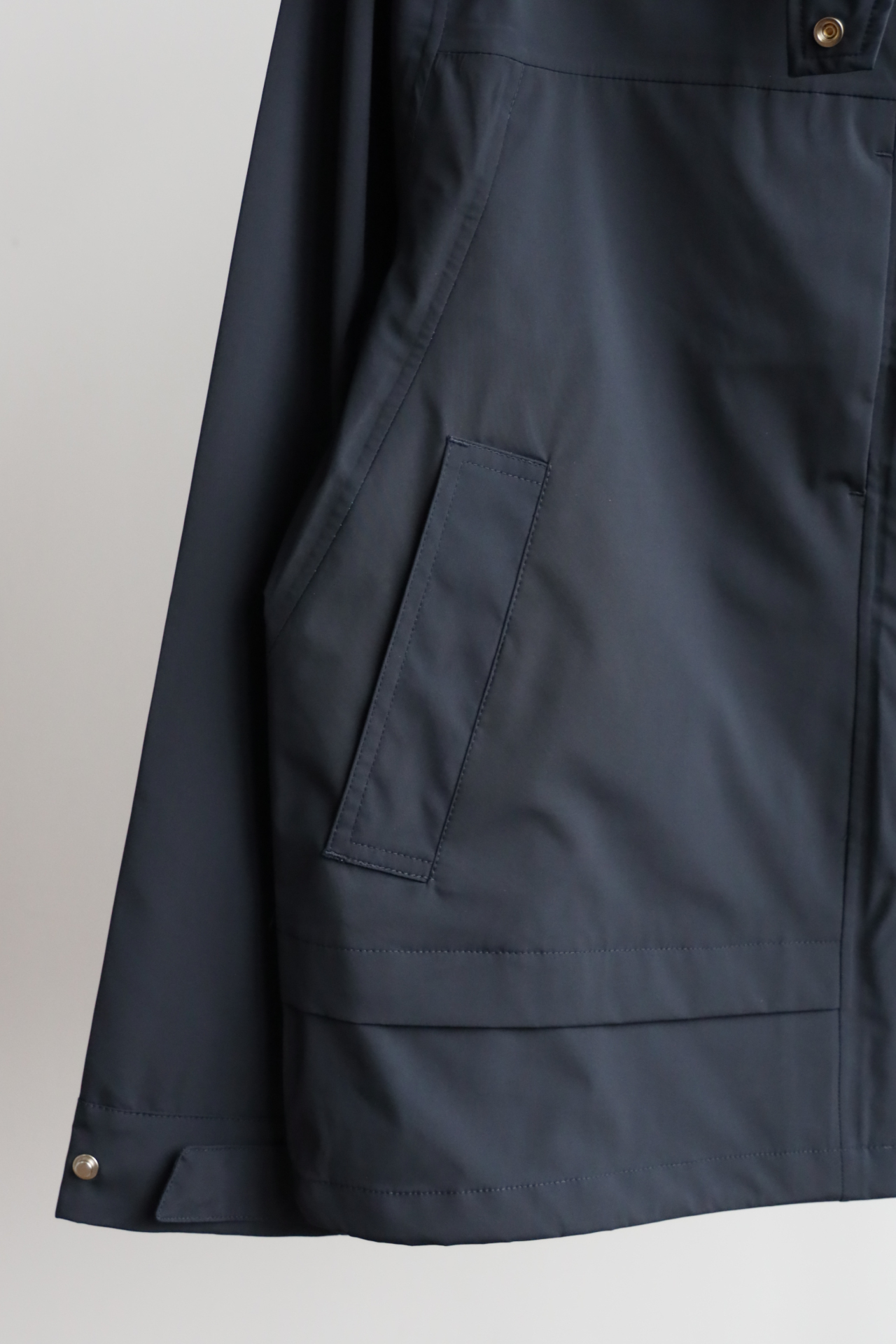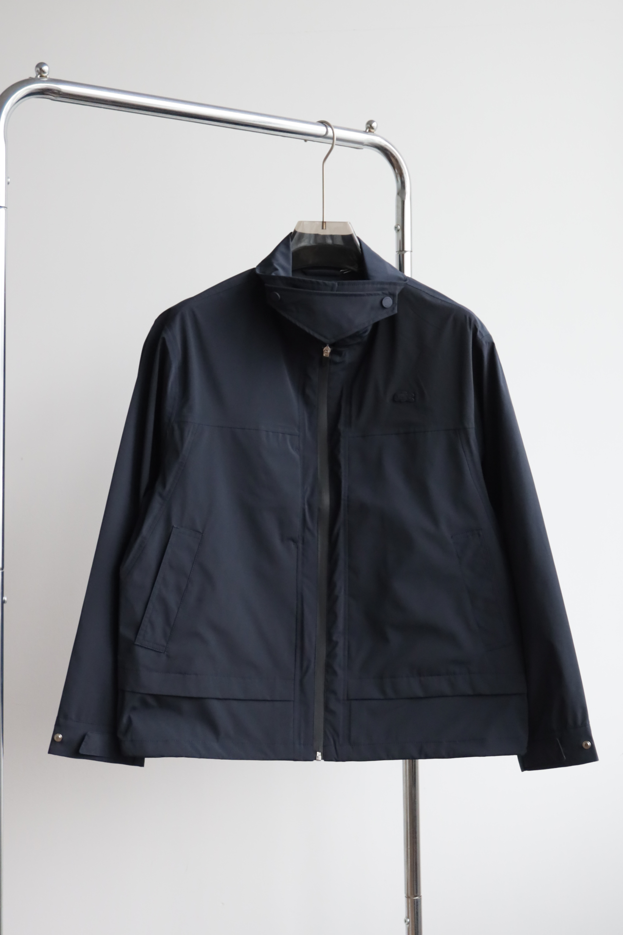 胸口同色系小标刺绣,内里全压胶,下摆也做了调节抽绳设计