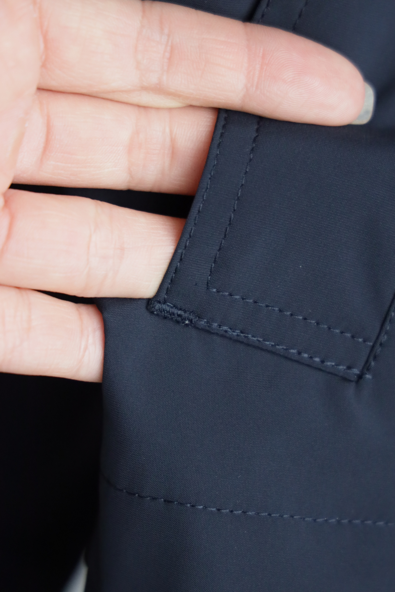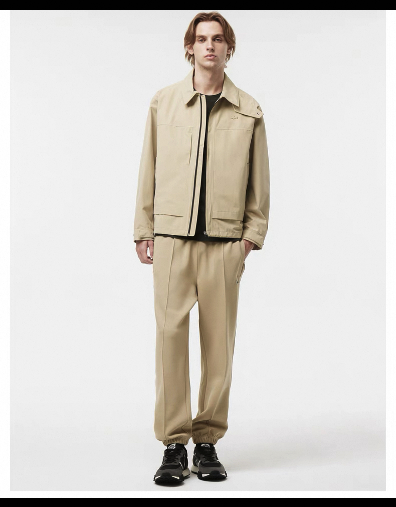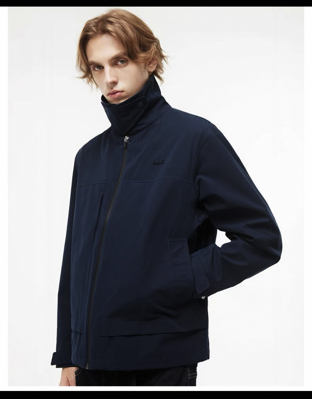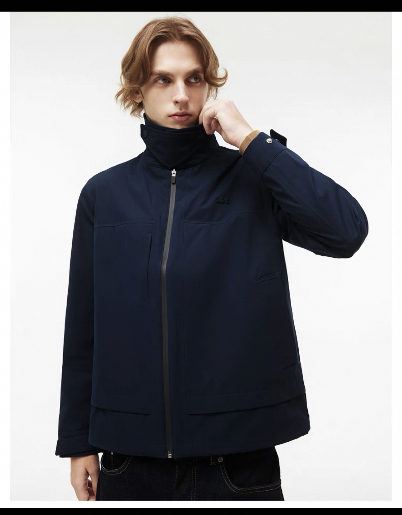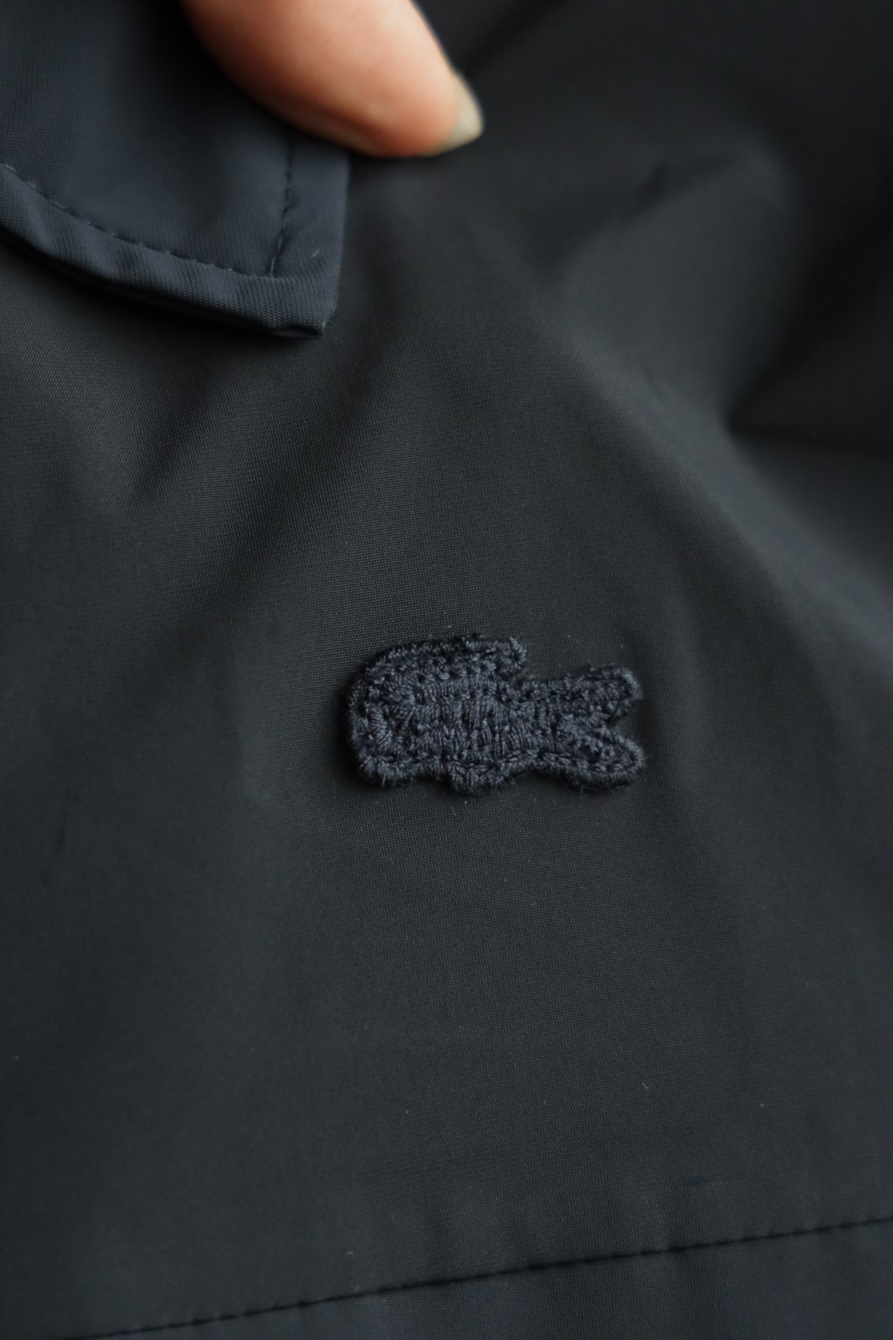 胸口同色系小标刺绣,内里全压胶,下摆也做了调节抽绳设计