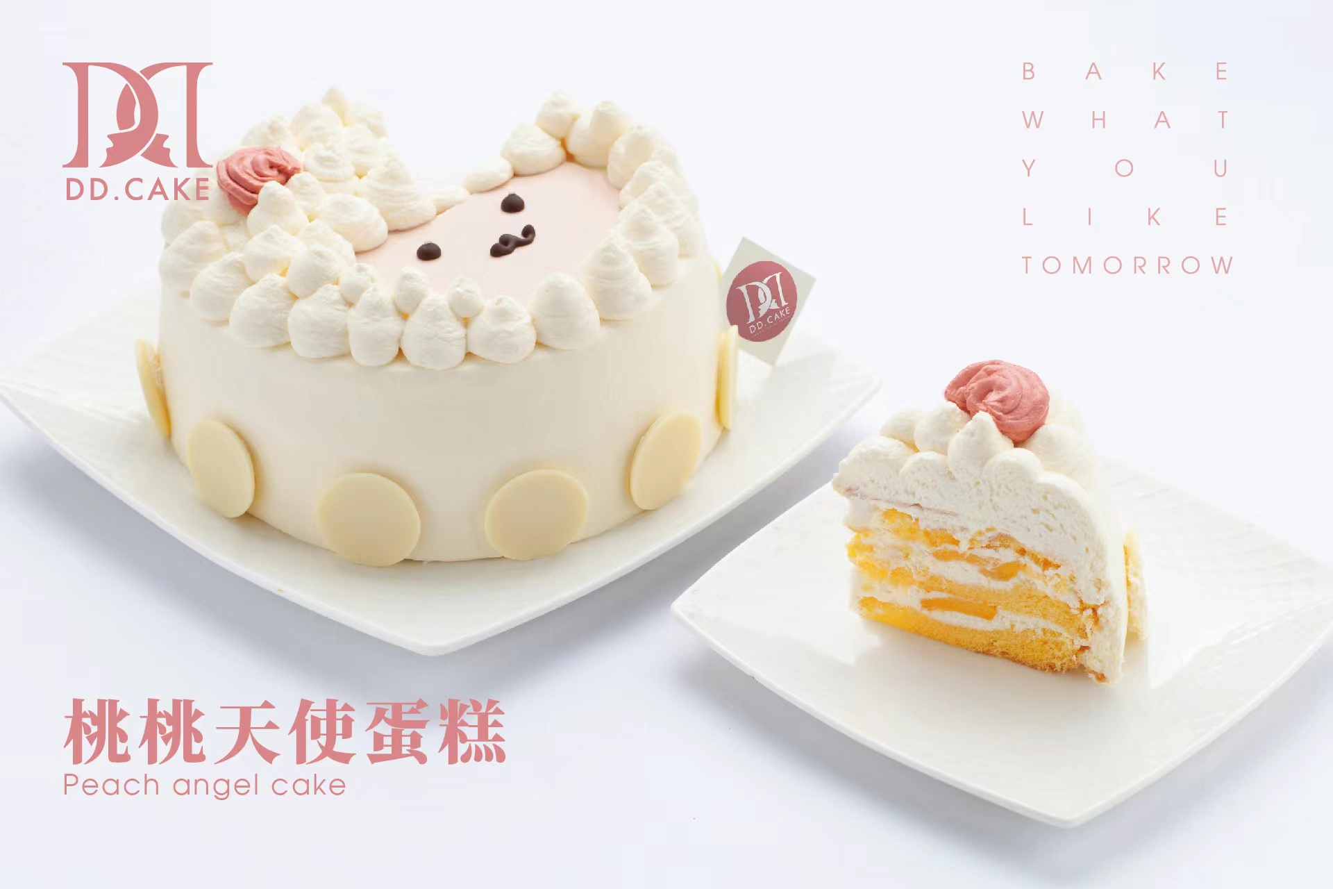 口味描述:乳酪奶油戚风蛋糕,夹层黄桃果肉